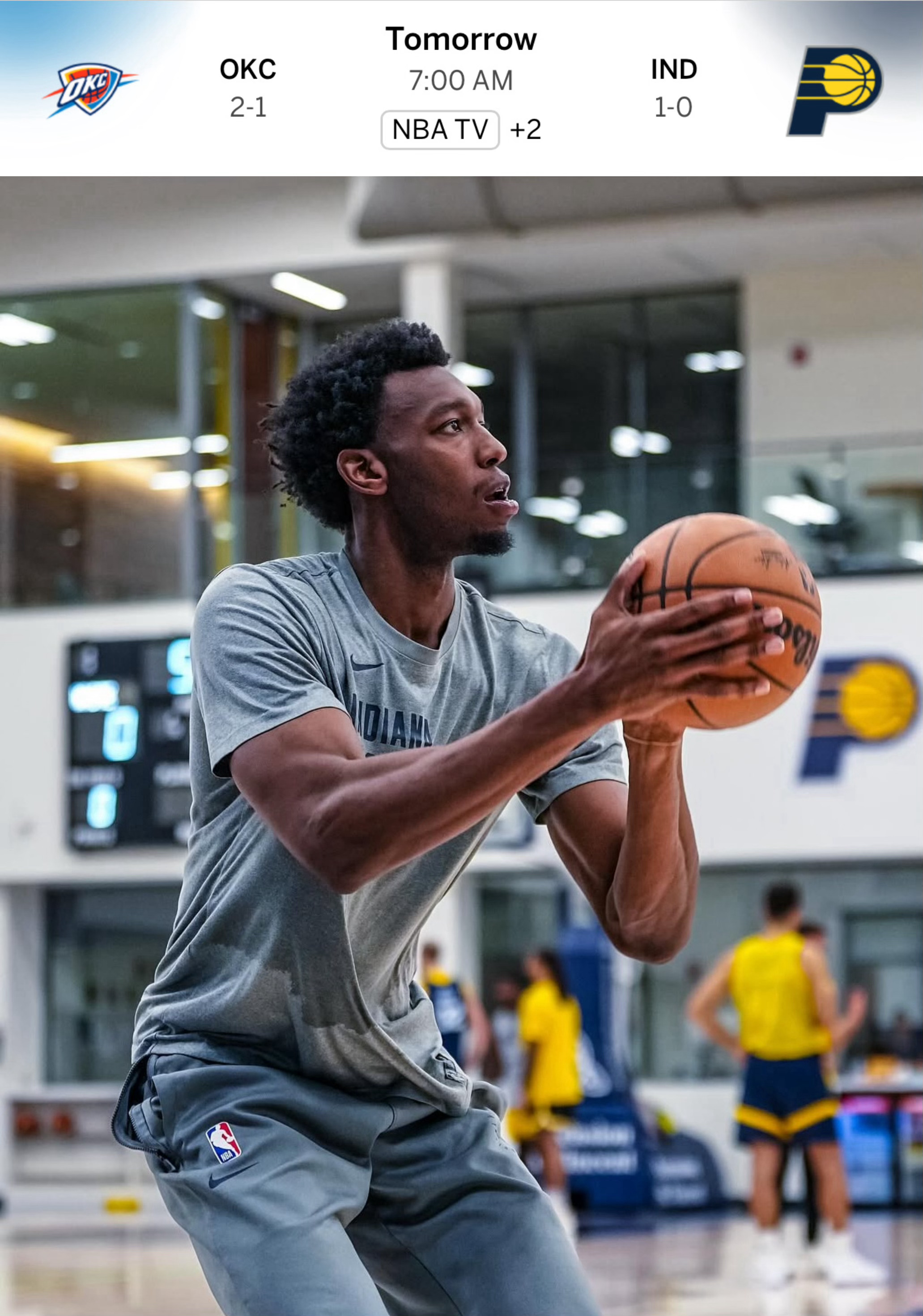 明日上午七点,步行者季前赛第二战,主场战卫冕冠军雷霆,期待怀子表现![打call]