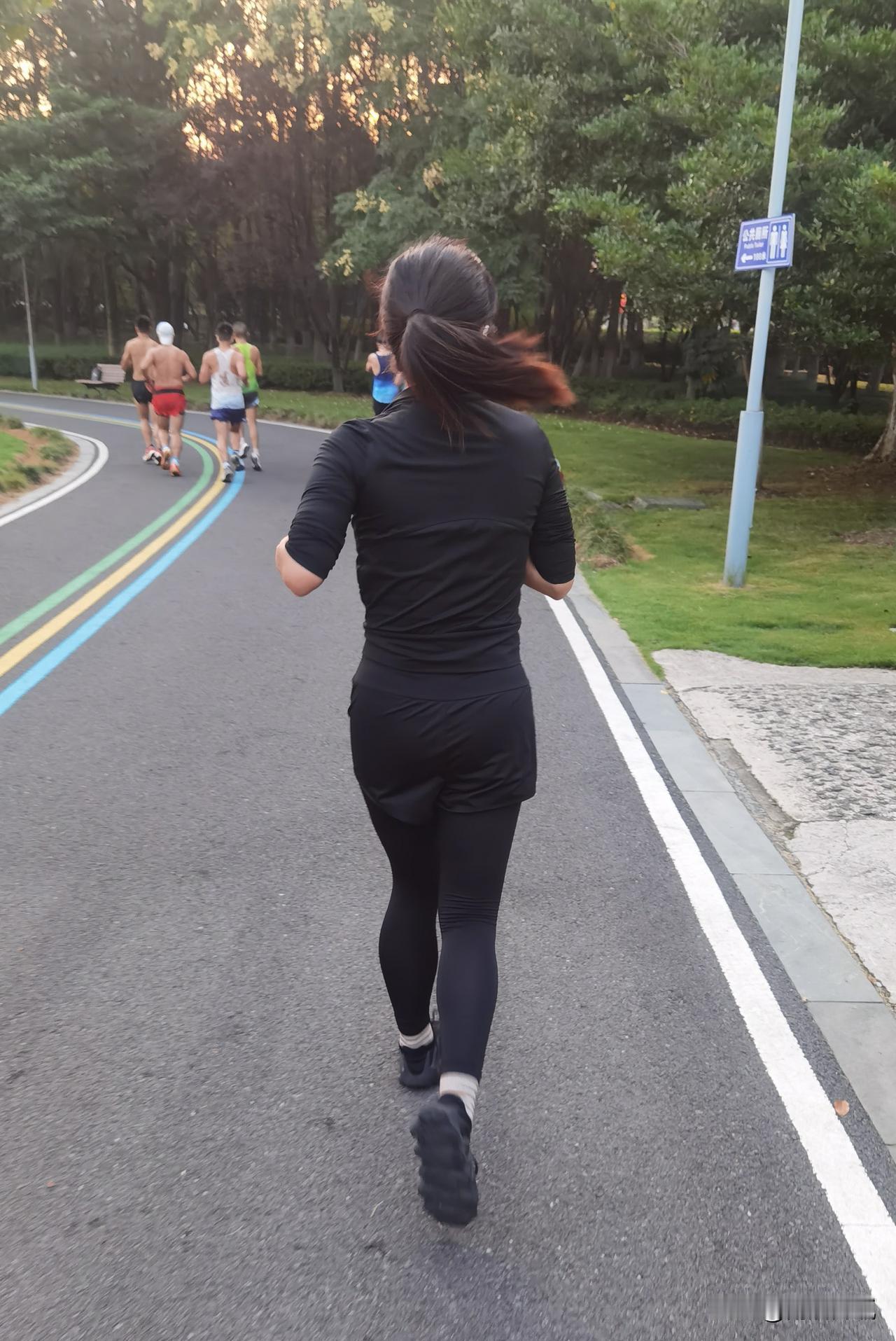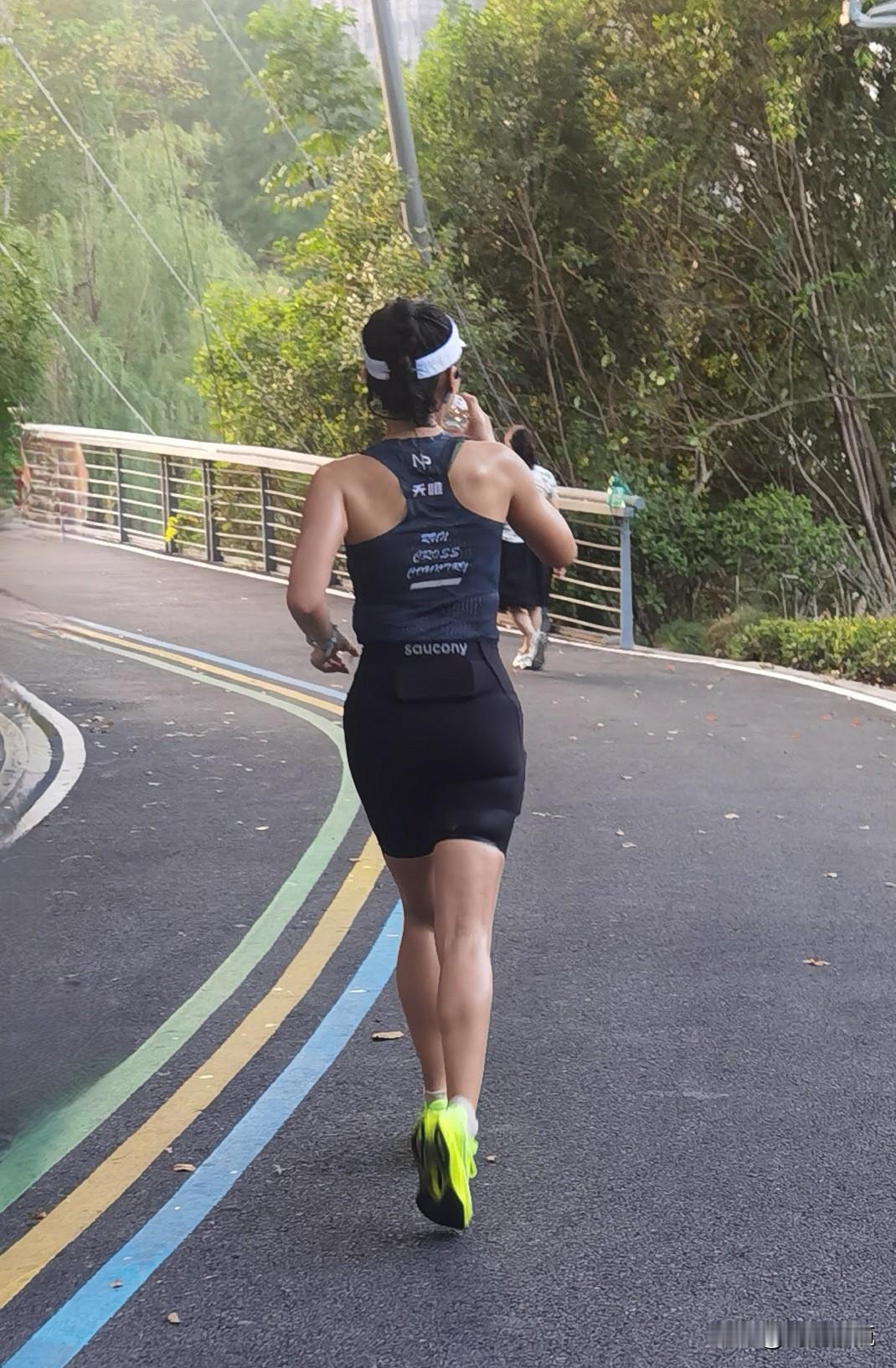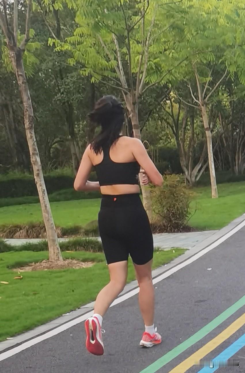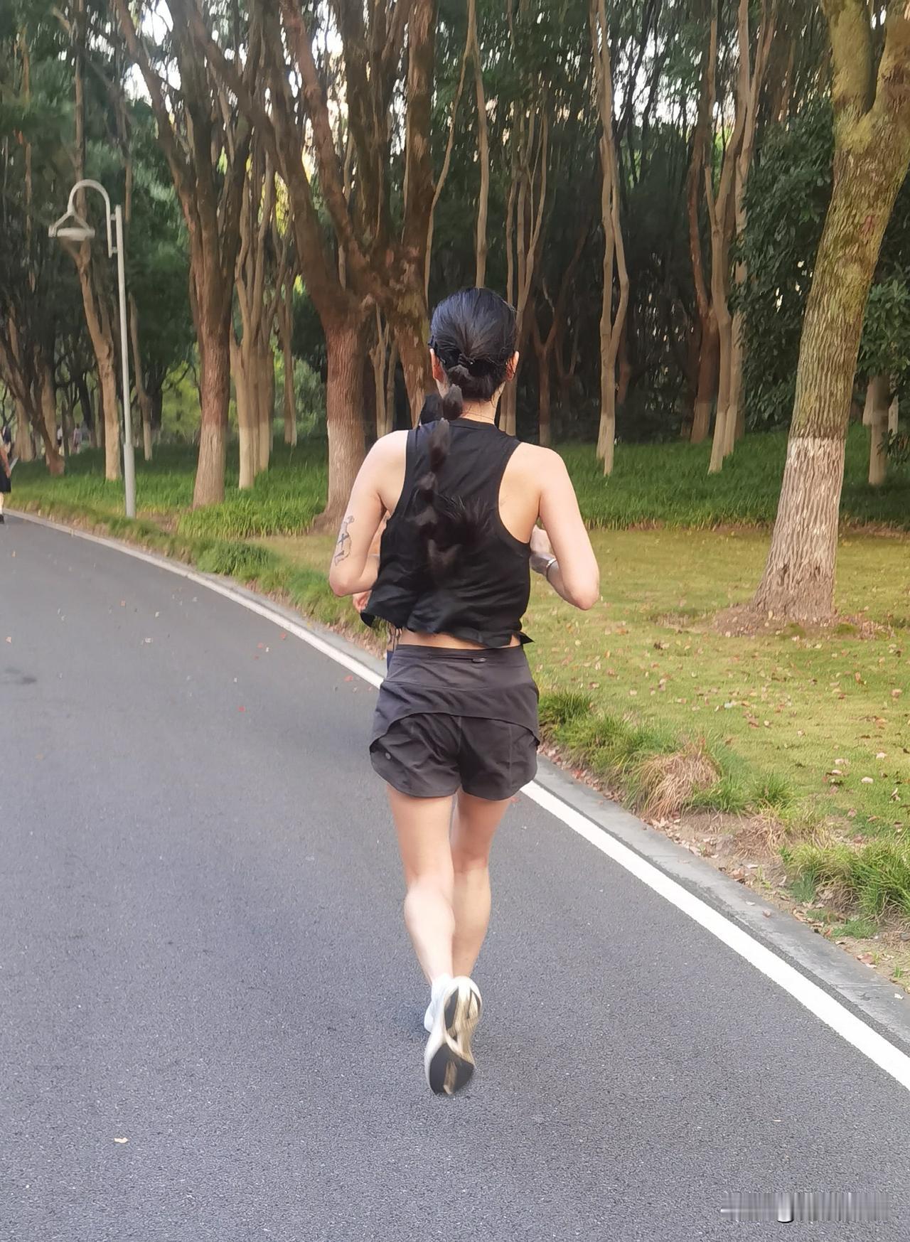 晨跑路上,黑衣女将如旋风般掠过,又美又飒,自信满满,惊艳了整条跑道。