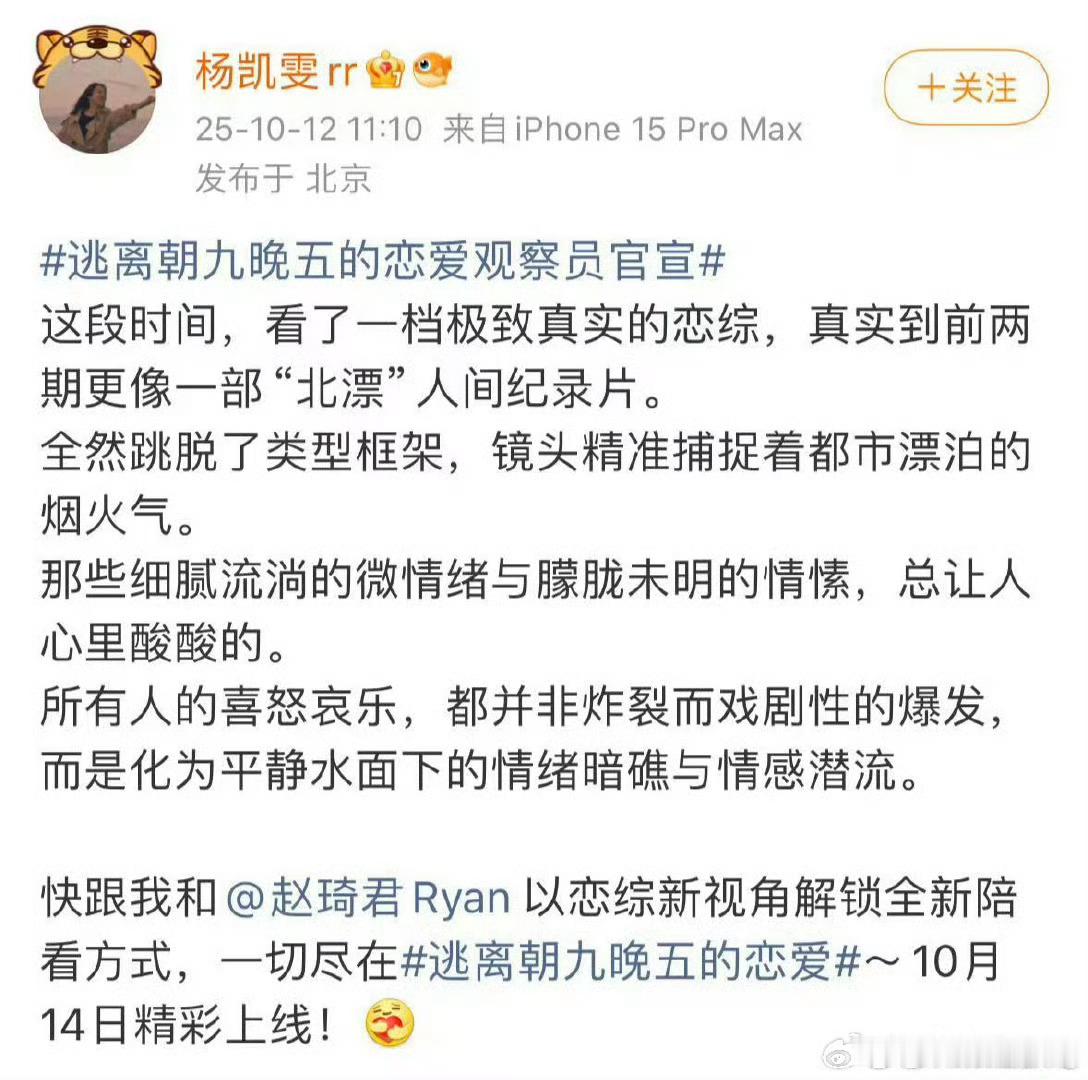 逃离朝九晚五的恋爱嘉宾官宣奇闻CP加盟逃离朝九晚五的恋爱恋综天花板来了!这对真
