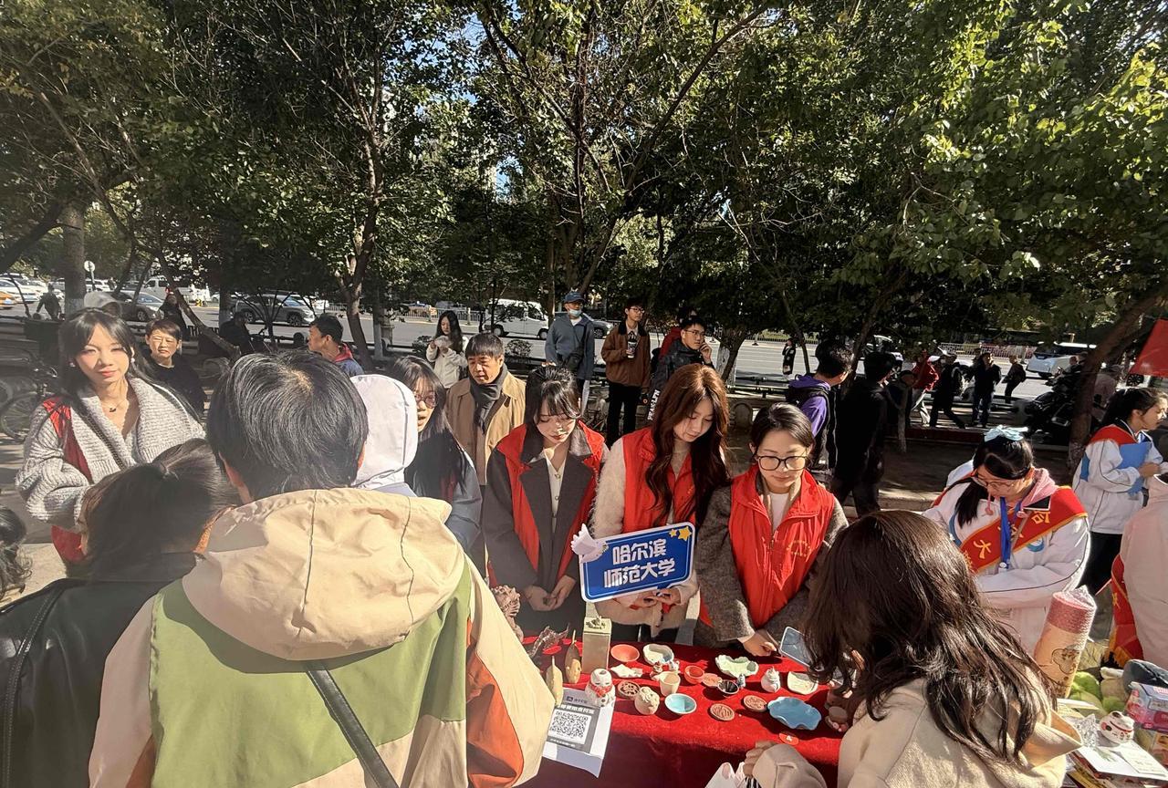 团队参加哈附中“义卖”活动,书法书签热卖,绝对销售主力!