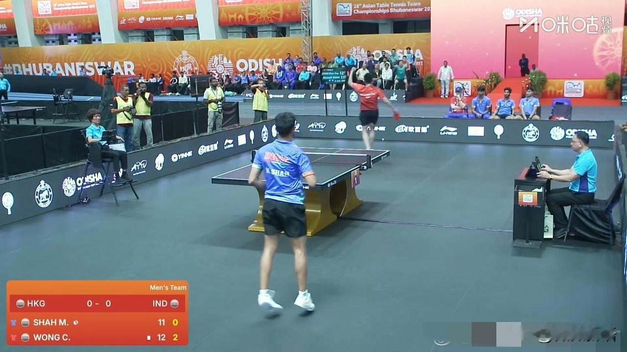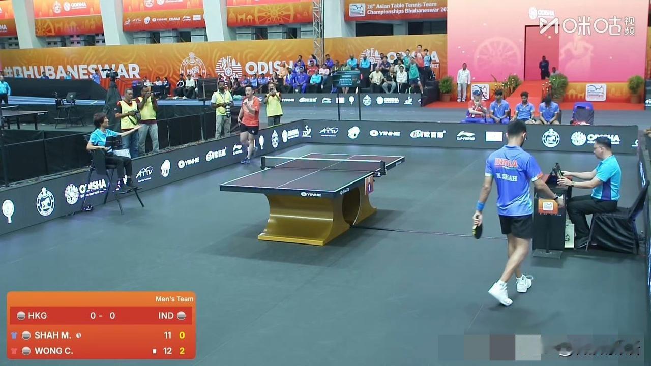 黄镇廷帮香港队先拿到一分。 亚锦赛男团1/4决赛开始了,中国香港队对印度队,刚刚的第一盘比赛中,黄镇廷玛纳什·沙,比分:11-8,11-9,13-11。关键分大圣打的很好,他是港队男团的一单,接下来第二盘比赛是陈颢桦对阵塔卡,小陈加油哦。 在赛前的时候,印度男队采访了塔卡,塔卡说他们的目标是继续拿奖牌,想让今年的奖牌换个颜色,但是想让港队赢。印度是东道主,今晚他们和港队的比赛是在一号台,韩国队和日本队的比赛在二号台,他们的第一盘比赛张本智和是3-0安宰贤,没想到男明星一局没赢啊。 中国队的比赛是安排在明天,还没出来首轮对阵哪个这会,看到现在男团的在打5进2的比赛,前两名会晋级1/4决赛。不管中国队对谁,国乒都加油!