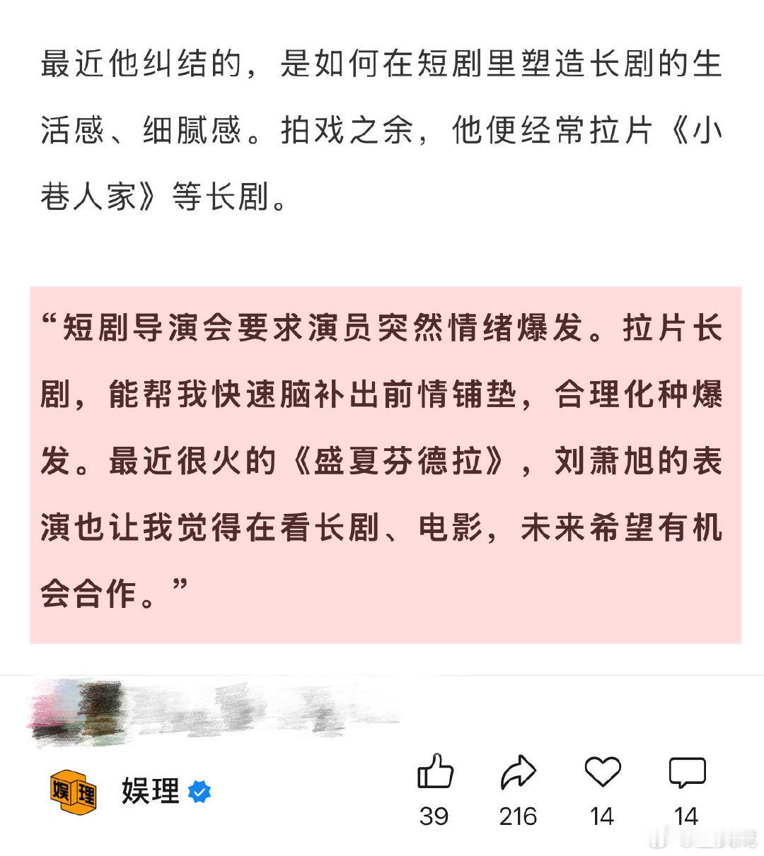 业内称短剧演员演长剧的意愿不高短剧男演员想和刘萧旭合作在刘博洋看来,短剧拍摄
