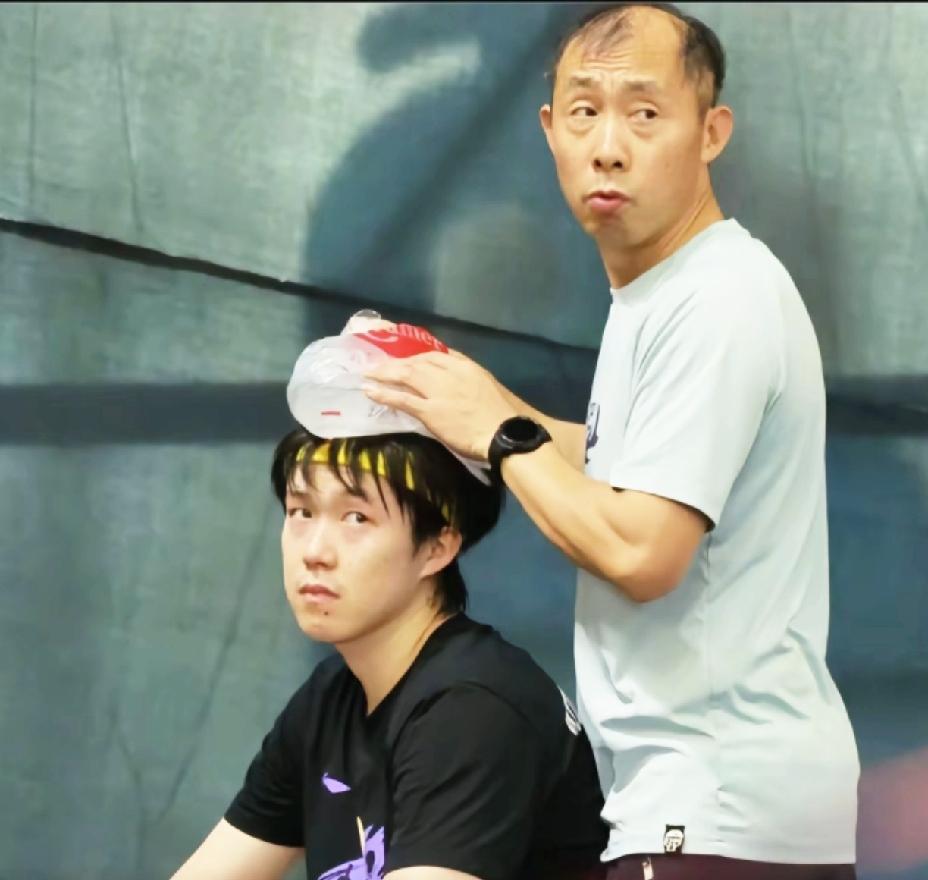 亚锦赛看把国乒队员热成啥了, 热得王楚钦直接冰敷头, 向鹏热的拿球拍当扇子。 亚锦赛场馆是有多热, 王楚钦热成啥了, 直接用冰敷脑袋, 那眼神看着委屈巴巴的, 头发都成条形码了。 向鹏和大头在旁边休息, 热得向鹏直接把衣服撩起来了, 还不停地用球拍扇。 虽然条件不是很好, 但是他们看着是真高兴呀 真是苦中作乐。 这哪是去比赛了, 简直就是去渡劫了。 吃不好睡不好, 不能洗澡, 连个空调也没有, 赶紧比赛完回来吧。[捂脸][捂脸] (图片源自于水印)