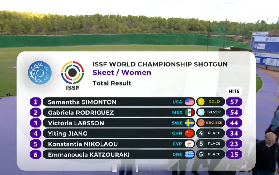 【飞碟射击世锦赛女子双向美国夺冠 江伊婷第四】国际体坛战报速递 10月12日雅典,2025飞碟射击世锦赛首个决赛日将产生双向飞碟金牌。在率先结束的女子比赛中,世界排名第一的美国选手西蒙顿以57中夺得冠军,墨西哥罗德里戈兹和瑞典拉尔森分获银铜牌,中国选手江伊婷名列第四。中国队没有选手进入男子决赛。