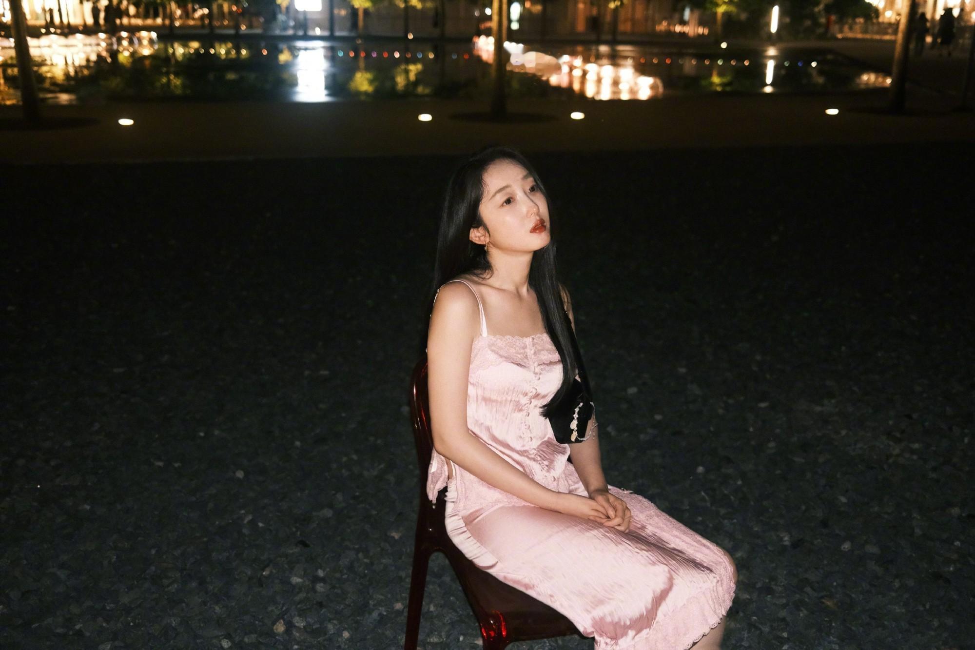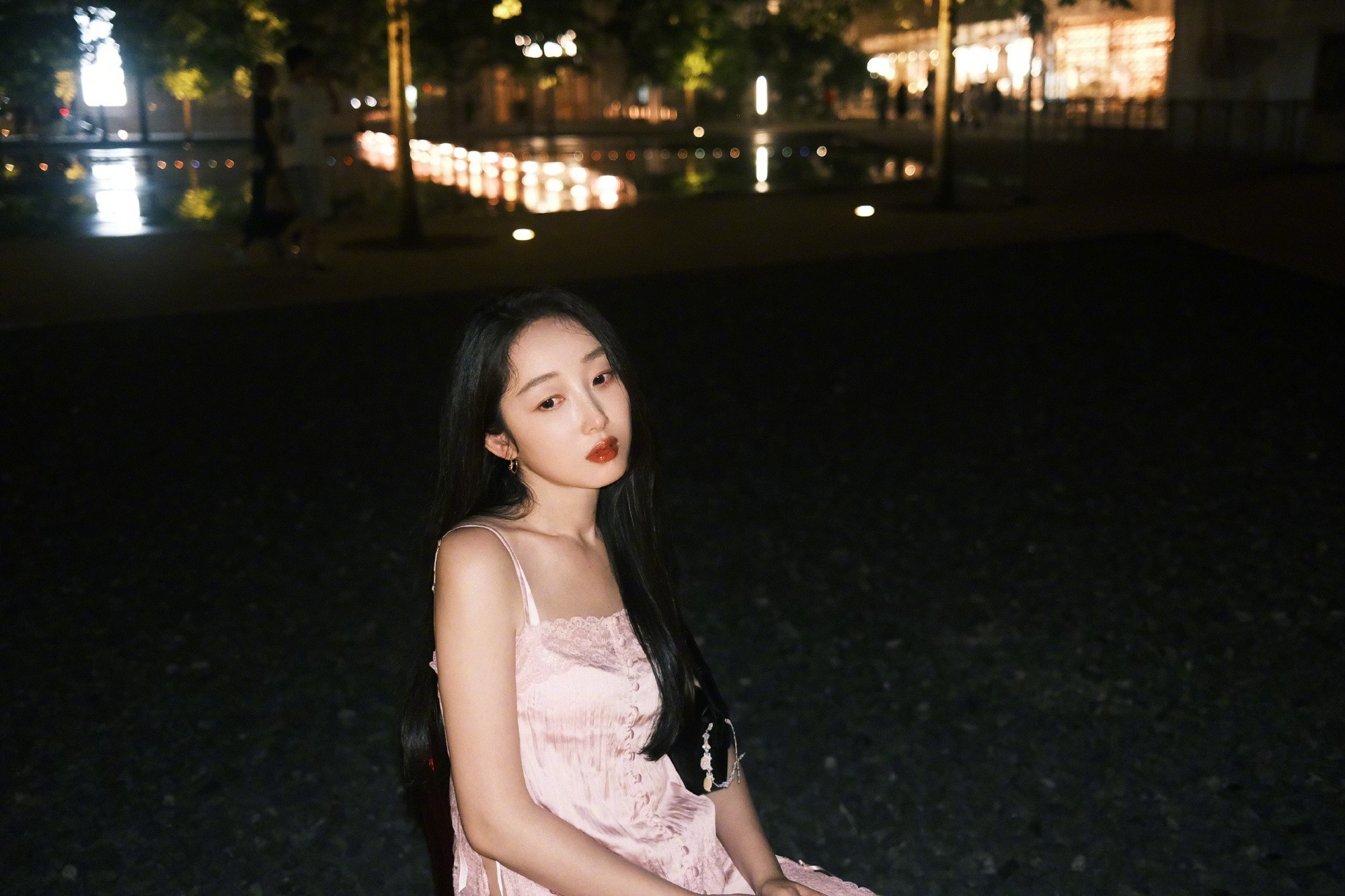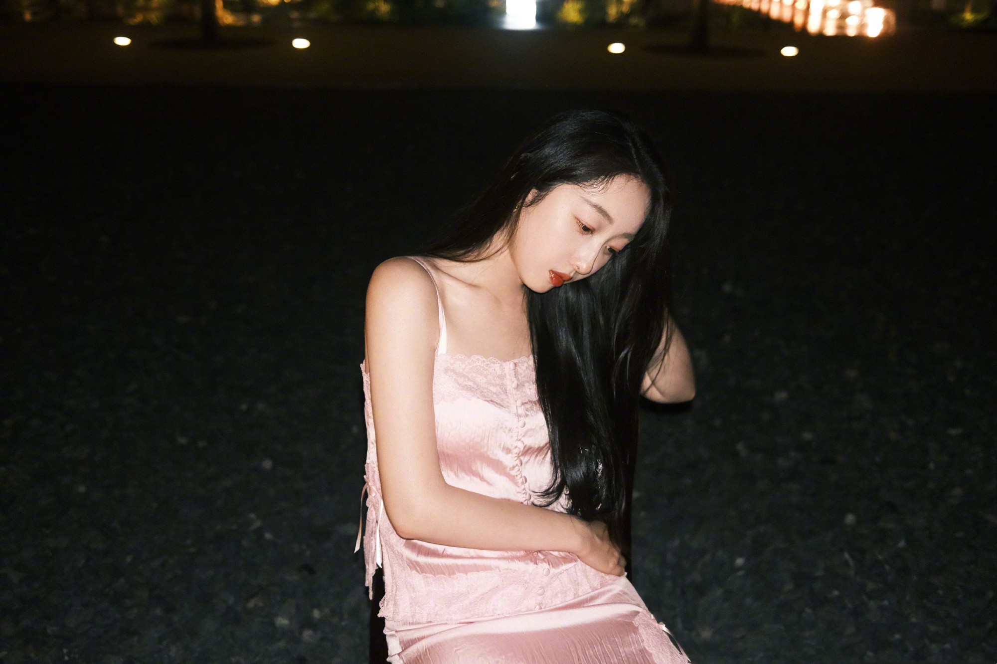 蒋梦婕随手拍,粉色吊带裙夜色美照​​​