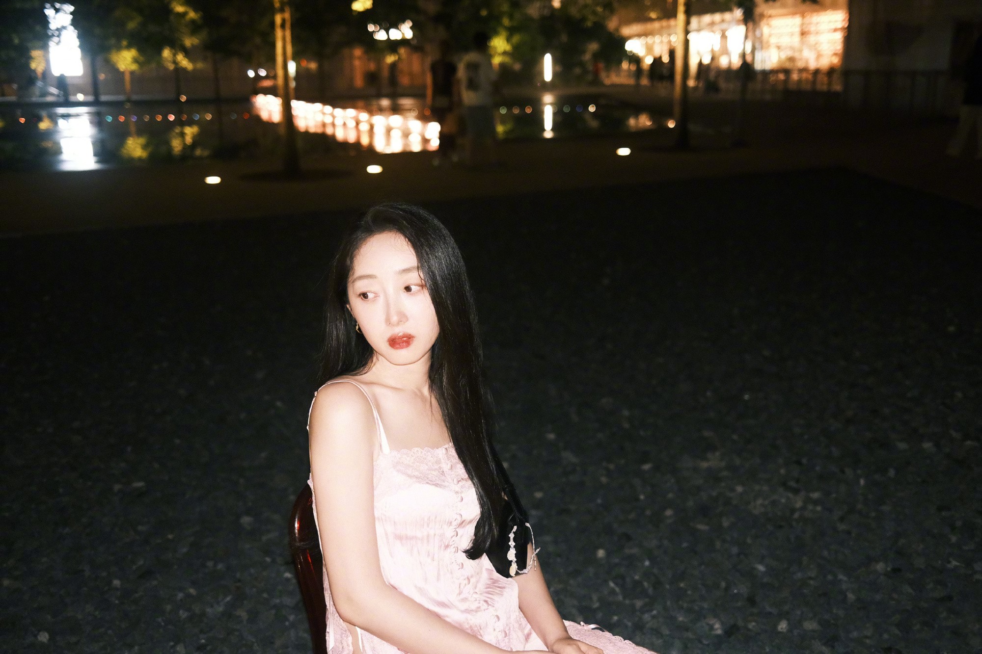 蒋梦婕随手拍,粉色吊带裙夜色美照 ​​​