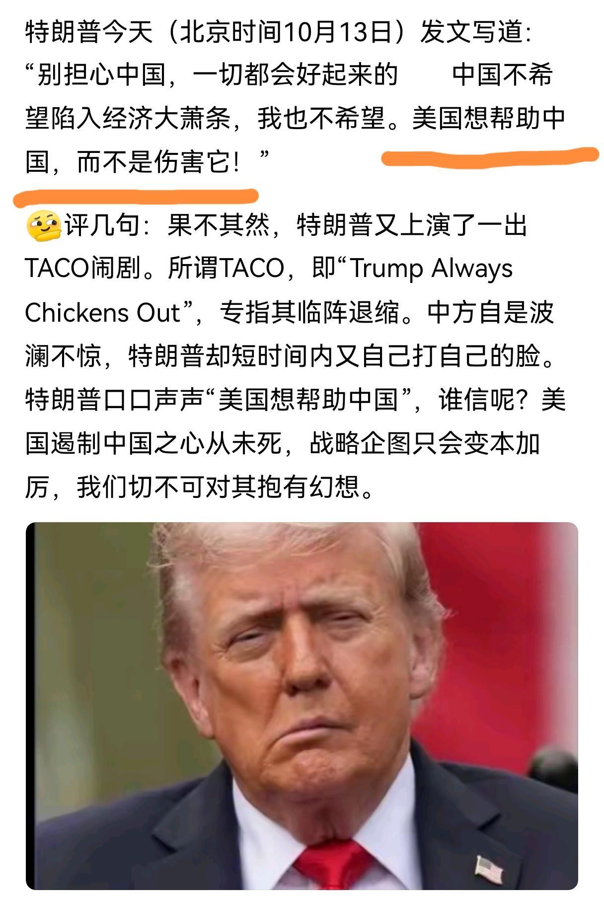 特朗普:说话要算数 作为世界第一强国的总统,特朗普你说话要算数啊!总是信口开河会给世界带来太多不稳定。“美国想帮助中国,而不是伤害它!”我们信了,当真话听了。中国人最讲究礼尚往来,你敬我一尺,我还你一丈。美国想帮助中国,中国也想帮助美国,美美其美,天下太平!