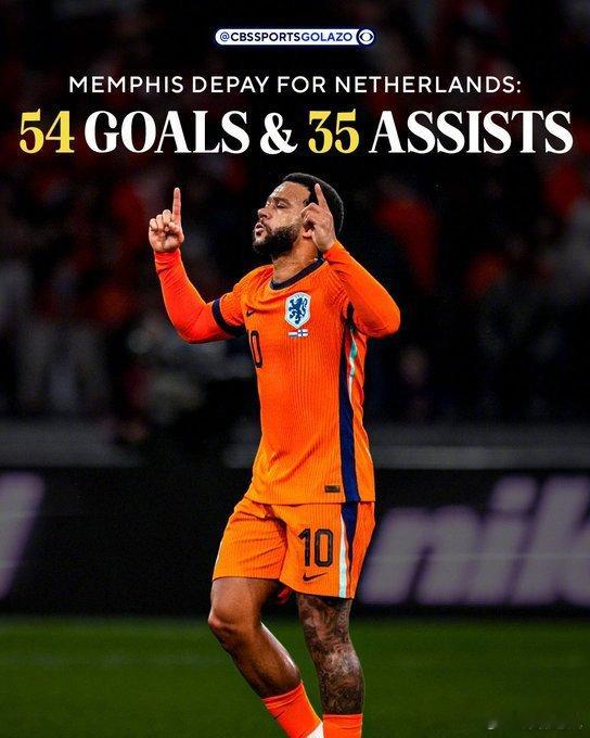 【孟菲斯-德佩:荷兰队史射手王+助攻王】在对芬兰的比赛中,孟菲斯-德佩贡献1射2传,超越斯内德,成为队史助攻王(35次助攻),同时他已经是队史的射手王(54球),超越了范佩西。