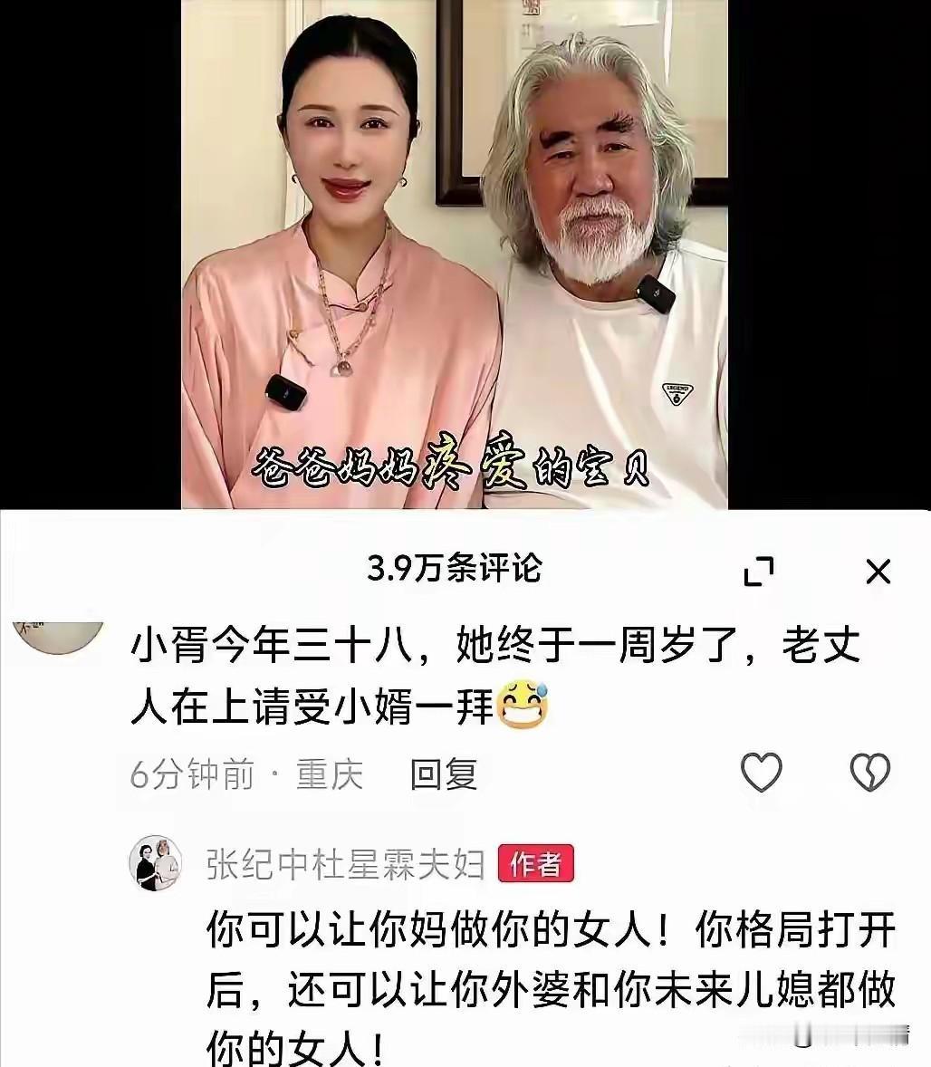 爱不爱的和网友没关系?!张纪中老婆杜星霖这样说就不太对了!因为看到有网友评论说