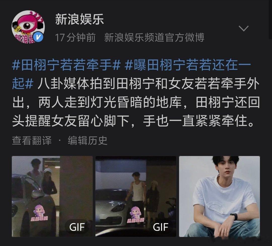 田栩宁若若牵手有狗仔发了田栩宁和若若牵手的图,不过没有说时间。但是田栩宁不是发