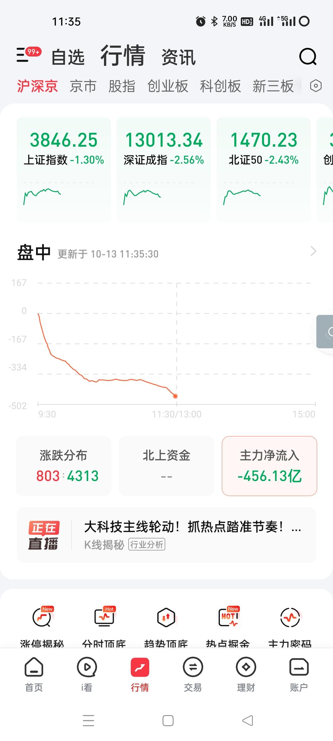 周末将散户吓死了。 其实今天并没有暴力砸盘。反而是开盘低开后拉起来了,5分钟左右的时间就拉起来了,肯定是汪汪队出手了。随后银行也有出手。 可惜拉起来后没人管了,主力再一次选择砸盘,但是砸盘资金并不多,也没有放量。说明躺平的多,买入的主力也不多。 留下悬念了,大盘要想扭转。主力资金必须反攻的,目前没有看到。 没有复制4.7号的玩法。。只是玩的难度依然很大,不过我的持仓是红的,因为周五买的是包钢股份和半导体基金以及一个个股。。 但是,消费电子和医药板块今天砸盘力度不小,这两个板块早就破位了,慎重,主力不回来就不要去抄底。