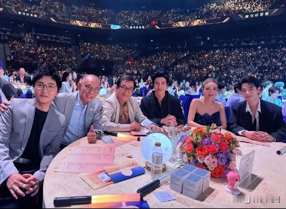 主桌除了主办方代表成龙与杨受成,只有五个艺人,大陆孙楠与肖战、台湾省王力宏、香港特别行政区容祖儿~~~ 香港英皇娱乐是个公司,杨受成是总裁 旗下艺人,容祖儿,谢霆峰,蔡卓妍,钟欣潼,古巨基,李克勤,陈伟霆,惠英红,张敬轩,霍汶希,任达华,方中信,泳儿,关智斌,卫诗雅,许靖韵,陈慧娴,白冰…… 这含金量与意义无需多言了
