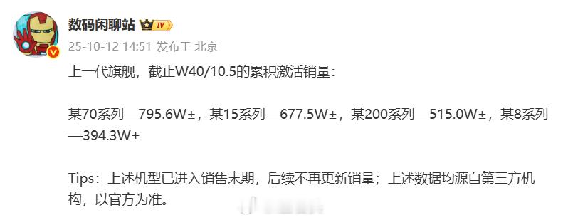 至于隔壁的70系列,其实跟小米15系列相比也才不到120万的差距。