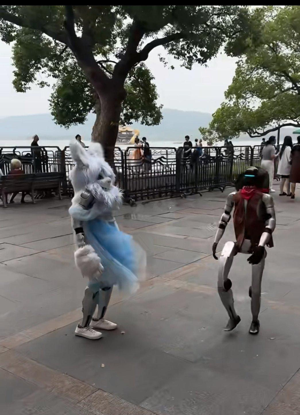 杭州西湖边,现在“遛机器人”的,越来越多了。[笑cry]