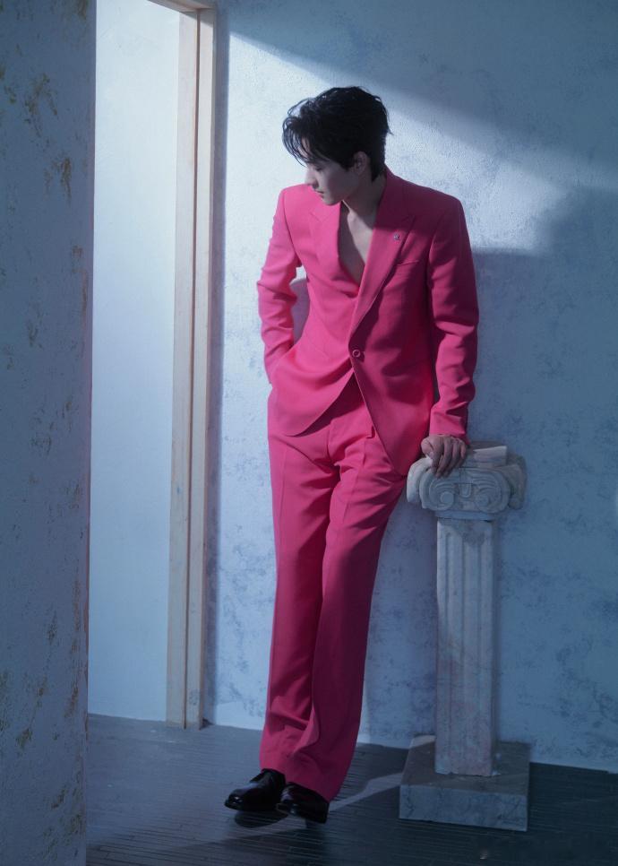 黄俊捷深V完全是主人级别 全玫粉深V西装太衬他!恰到好处的领口显性感不刻意,慵懒姿态里藏着主人级气场,挑人的颜色穿得高级,站那儿就像全场焦点,反差感绝了!