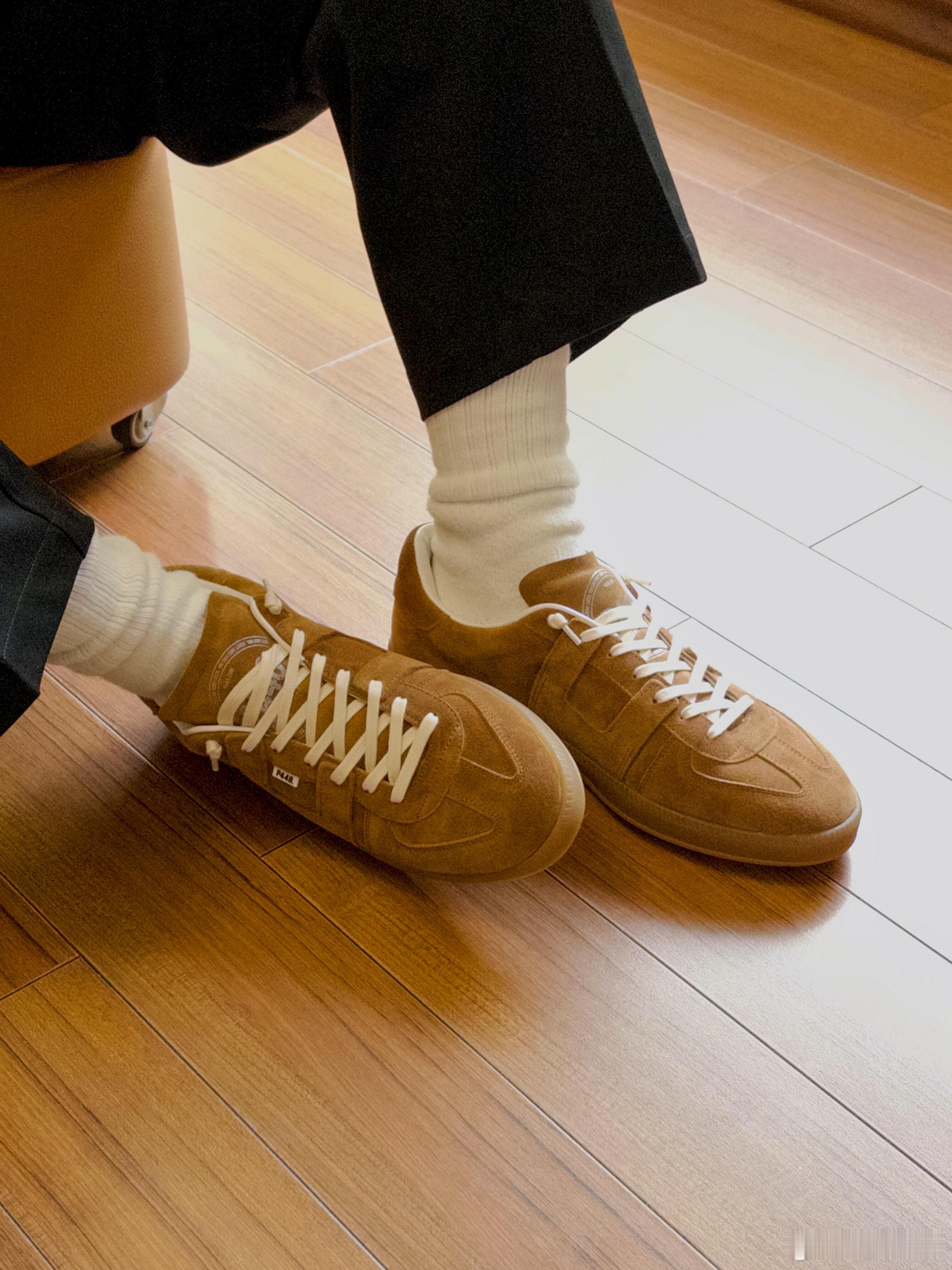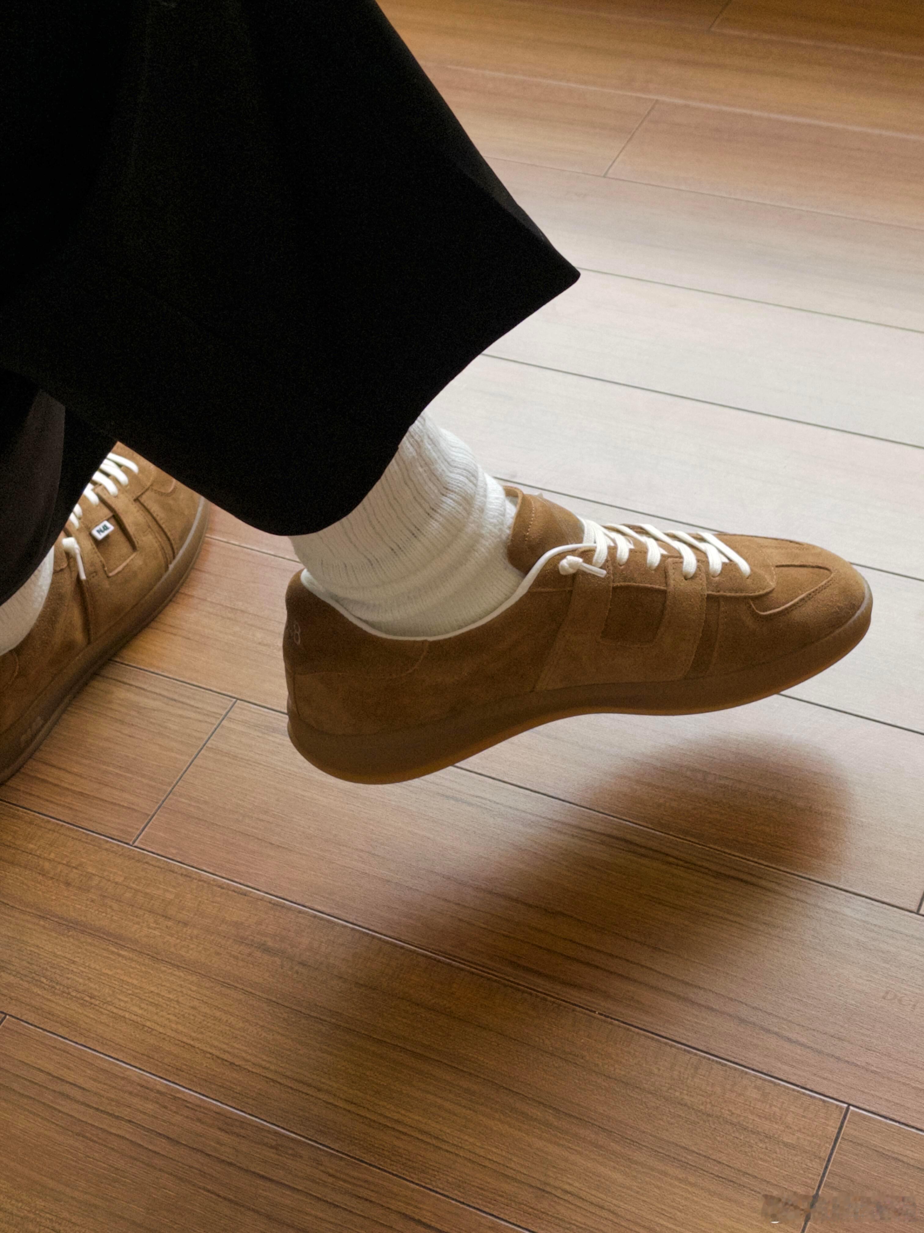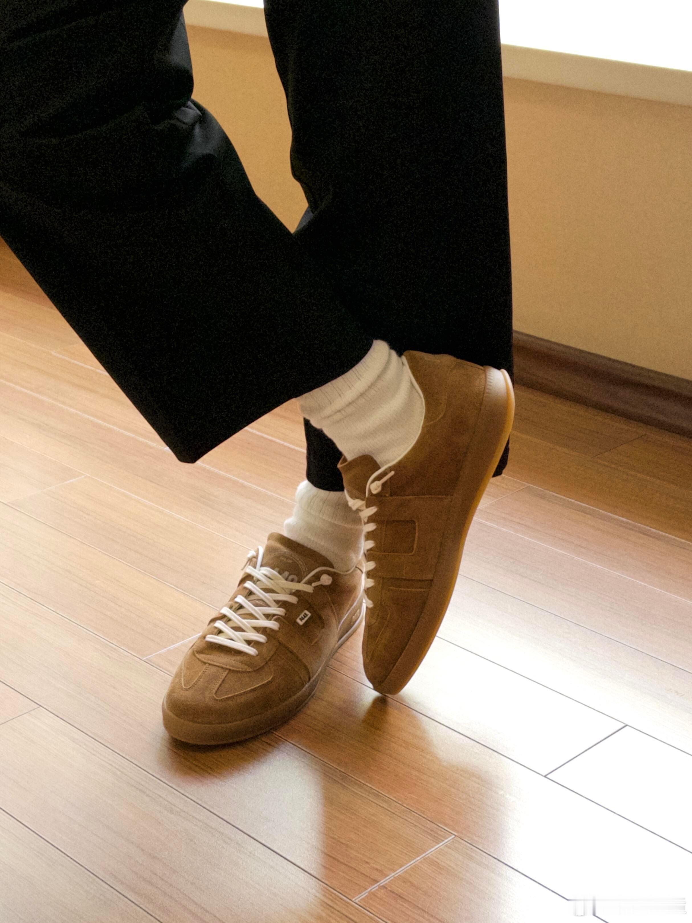 搭配堆堆感的白色中筒袜与垂坠的黑色长裤,整体穿搭在简洁的木地板上呈现出松弛有度的日常氛围。鞋子兼具复古美学与实用主义,厚实的同色系橡胶鞋底确保了穿着舒适度。无论是用于都市通勤还是休闲漫步,它都是一件能瞬间提升整体造型质感的必备单品,完美诠释了低调而富有格调的日常品味。时尚鞋履