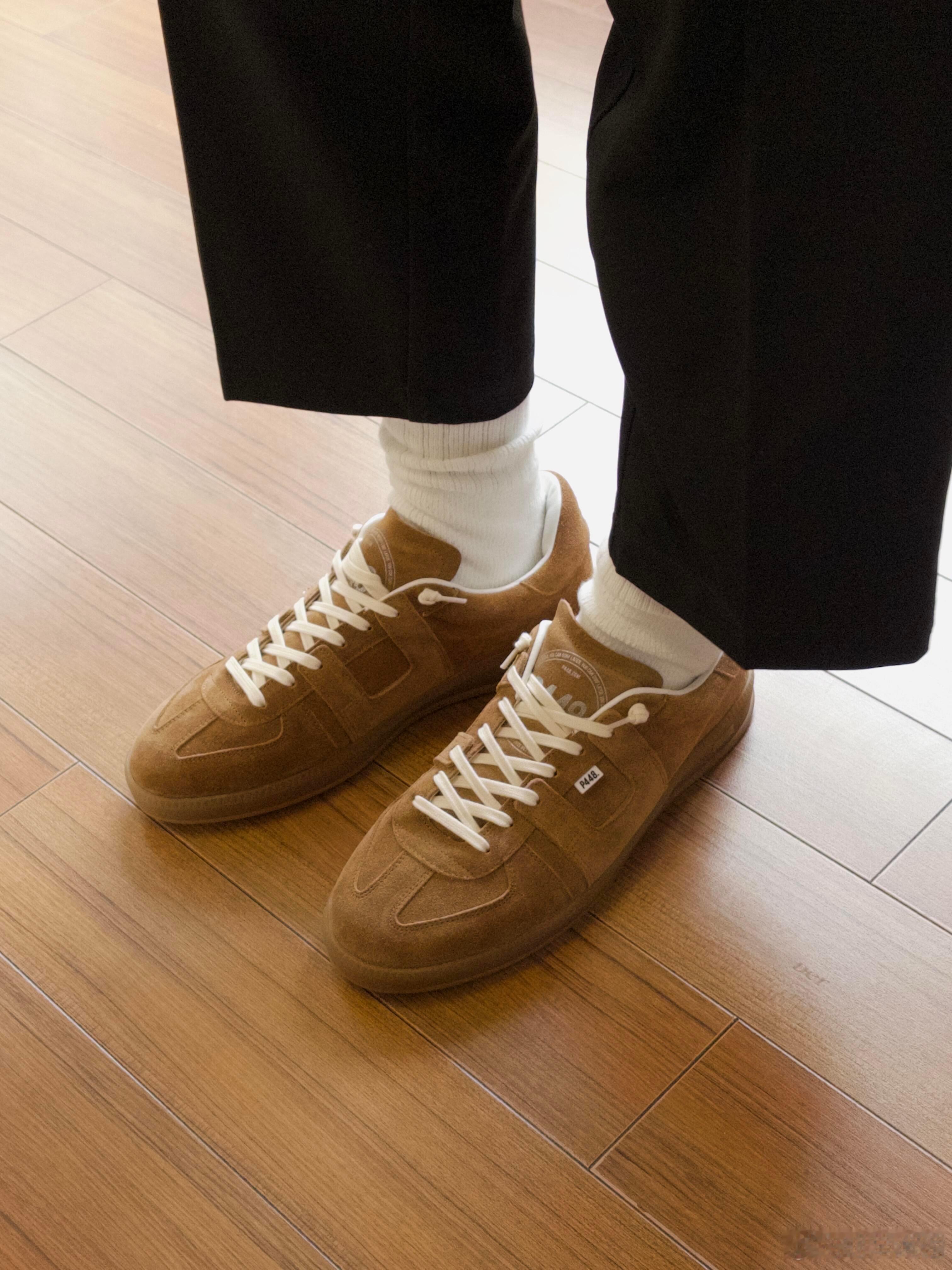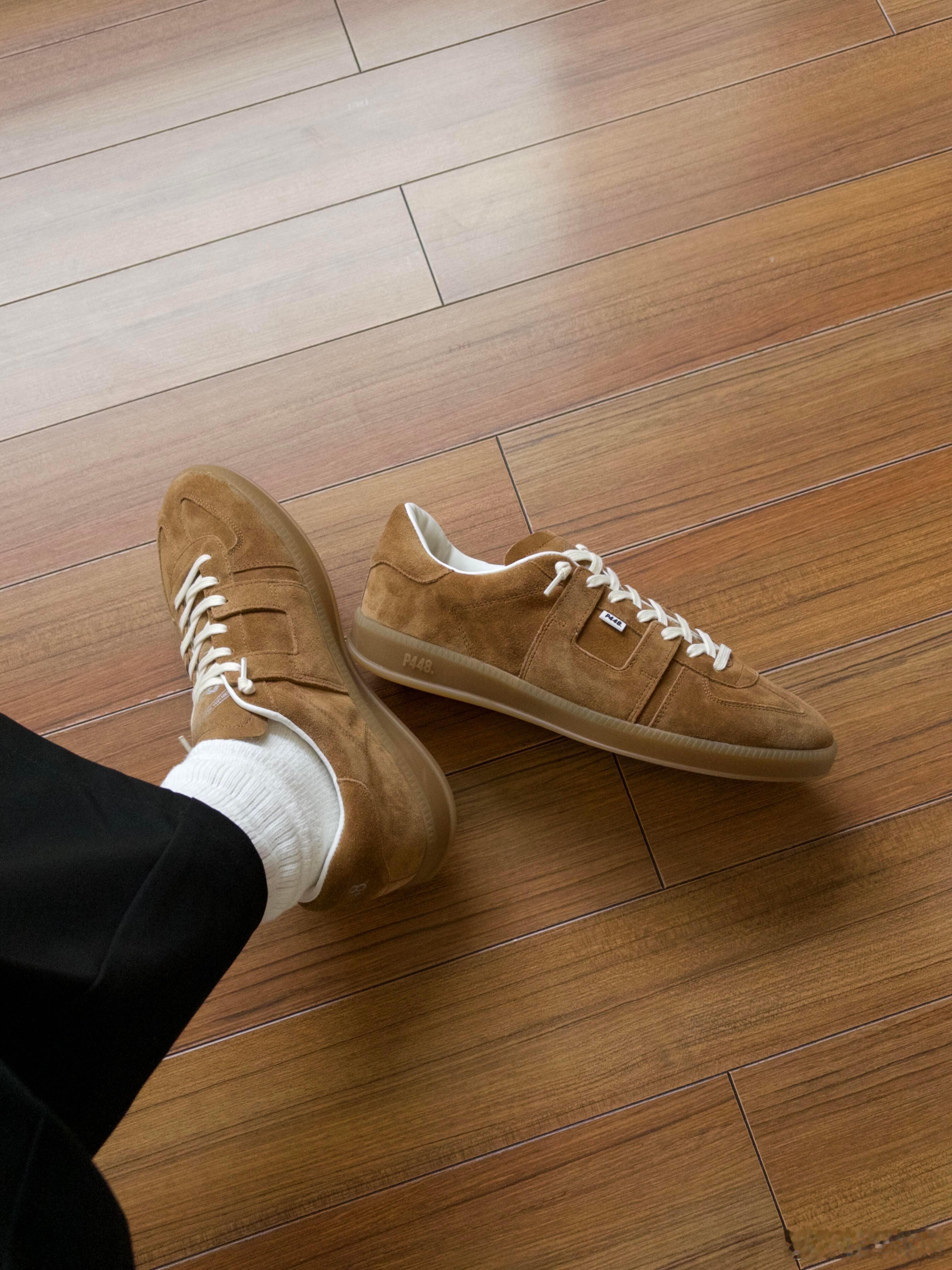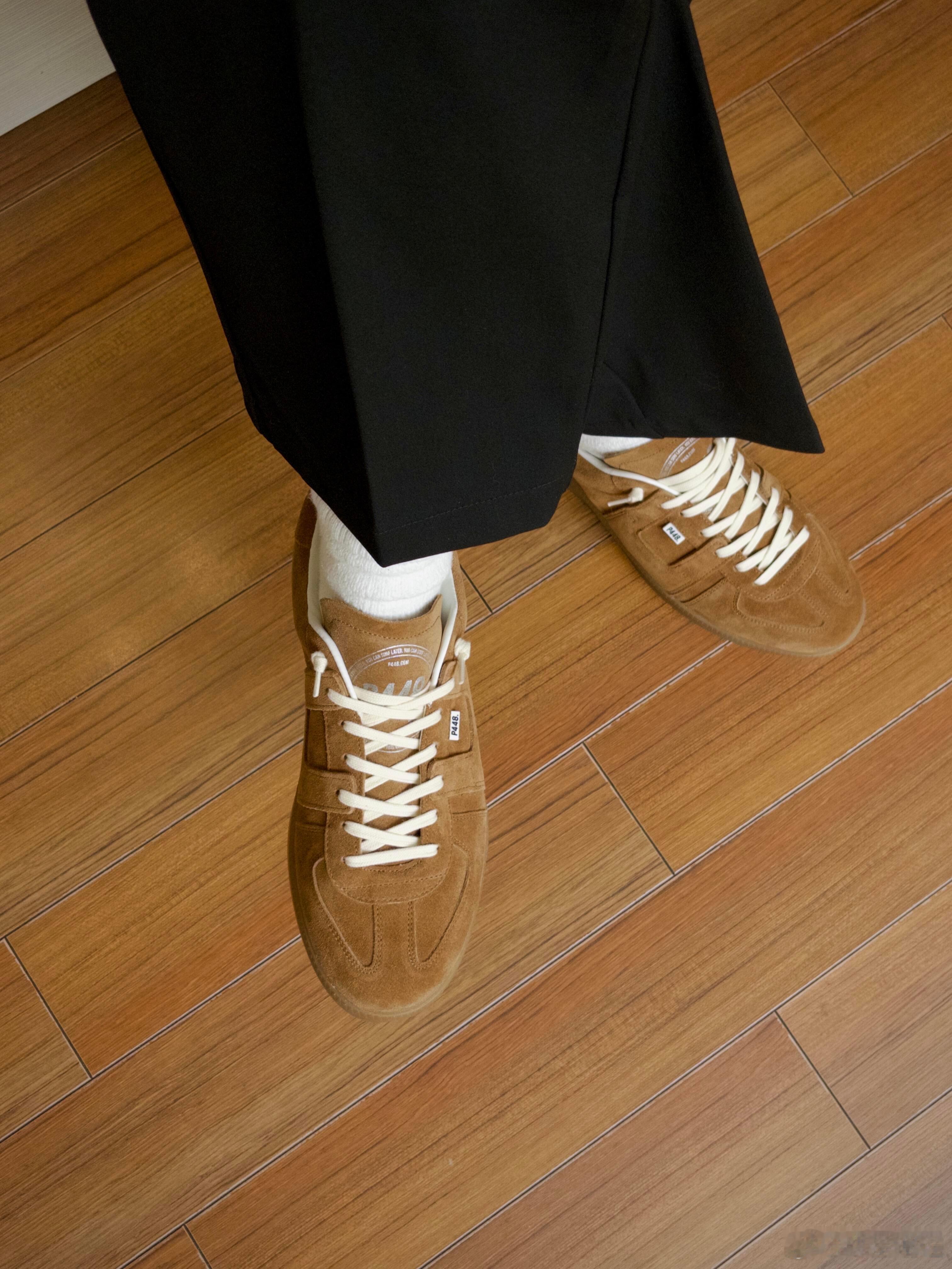 搭配堆堆感的白色中筒袜与垂坠的黑色长裤,整体穿搭在简洁的木地板上呈现出松弛有度的日常氛围。鞋子兼具复古美学与实用主义,厚实的同色系橡胶鞋底确保了穿着舒适度。无论是用于都市通勤还是休闲漫步,它都是一件能瞬间提升整体造型质感的必备单品,完美诠释了低调而富有格调的日常品味。时尚鞋履