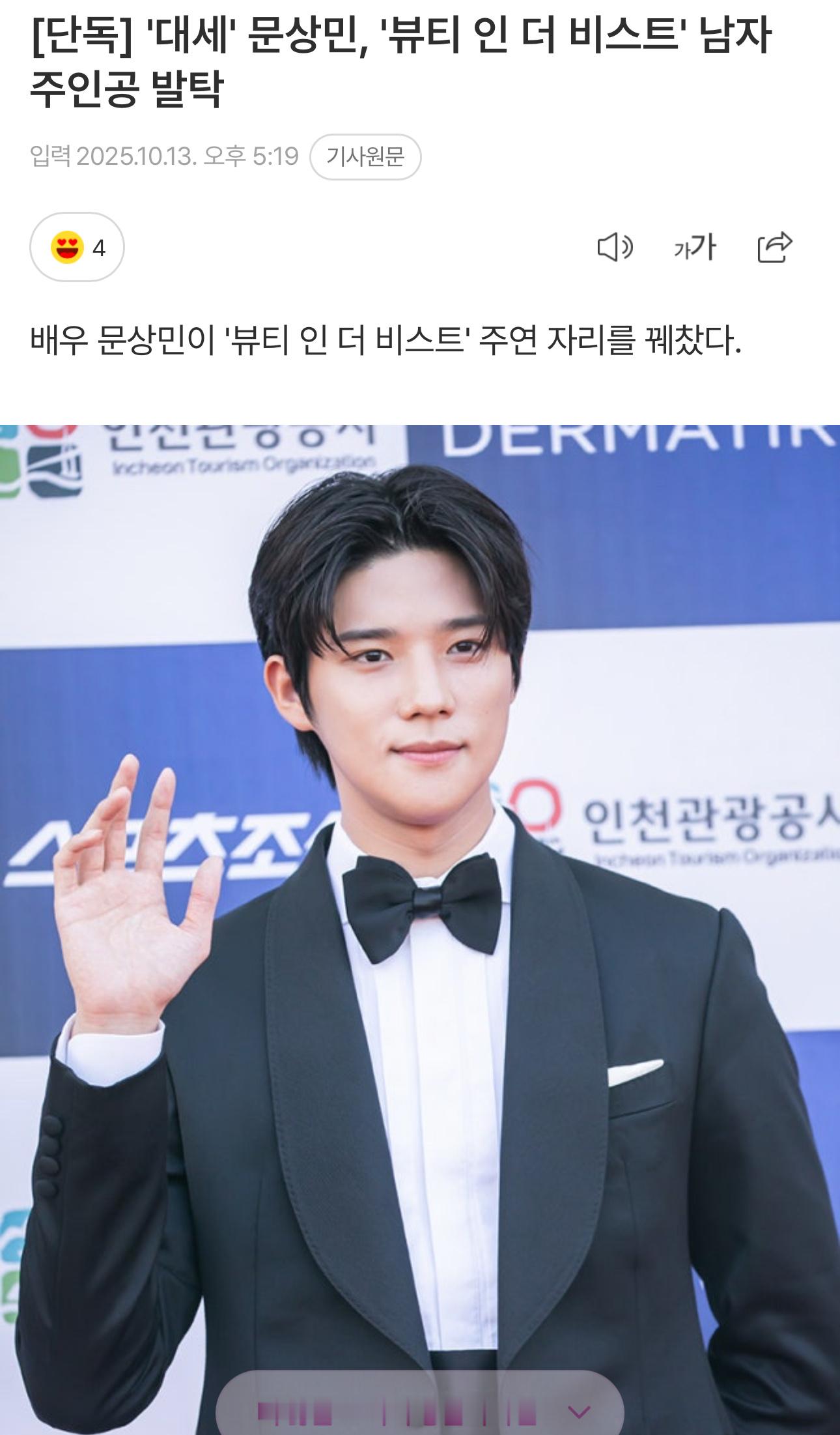 金珉周x文相敏有望合作网飞剧Beauty in the Beast 男女主!