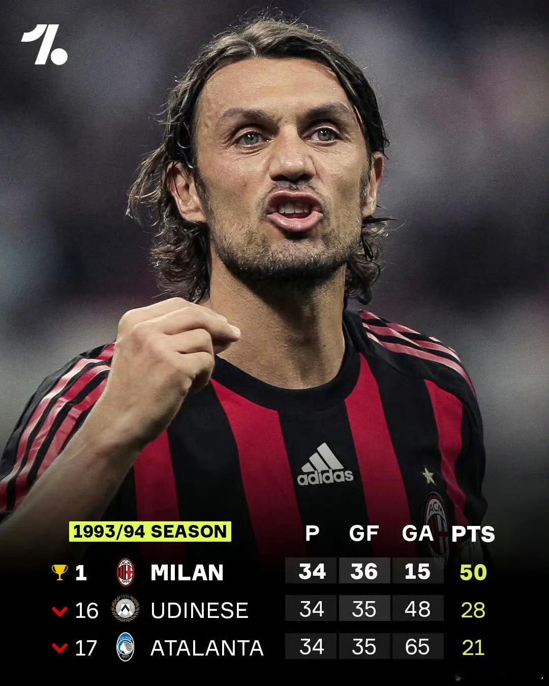 时间回1994年,AC米兰仅打入35粒联赛进球、失15球的战绩竟夺得意甲冠军!