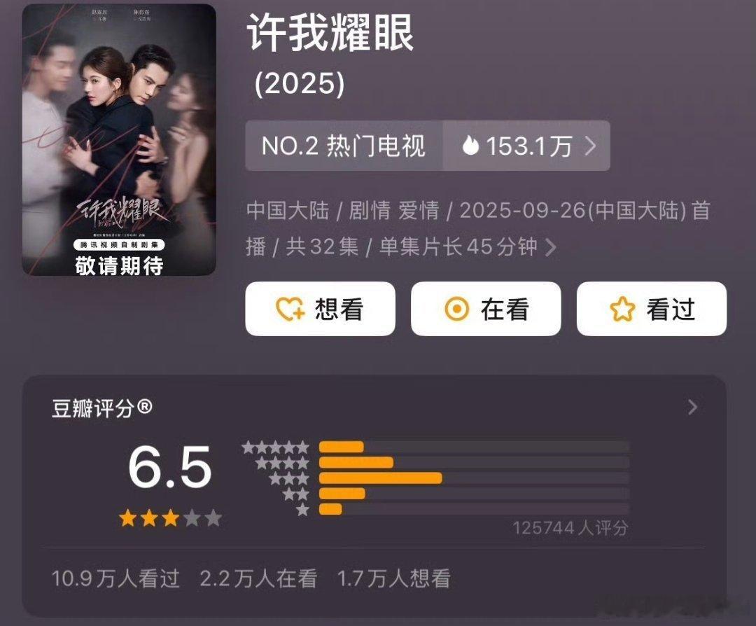 赵露思陈伟霆许我耀眼开分6.5分 这个分绝对低了吧[捂嘴哭][捂嘴哭][捂嘴哭][捂嘴哭]