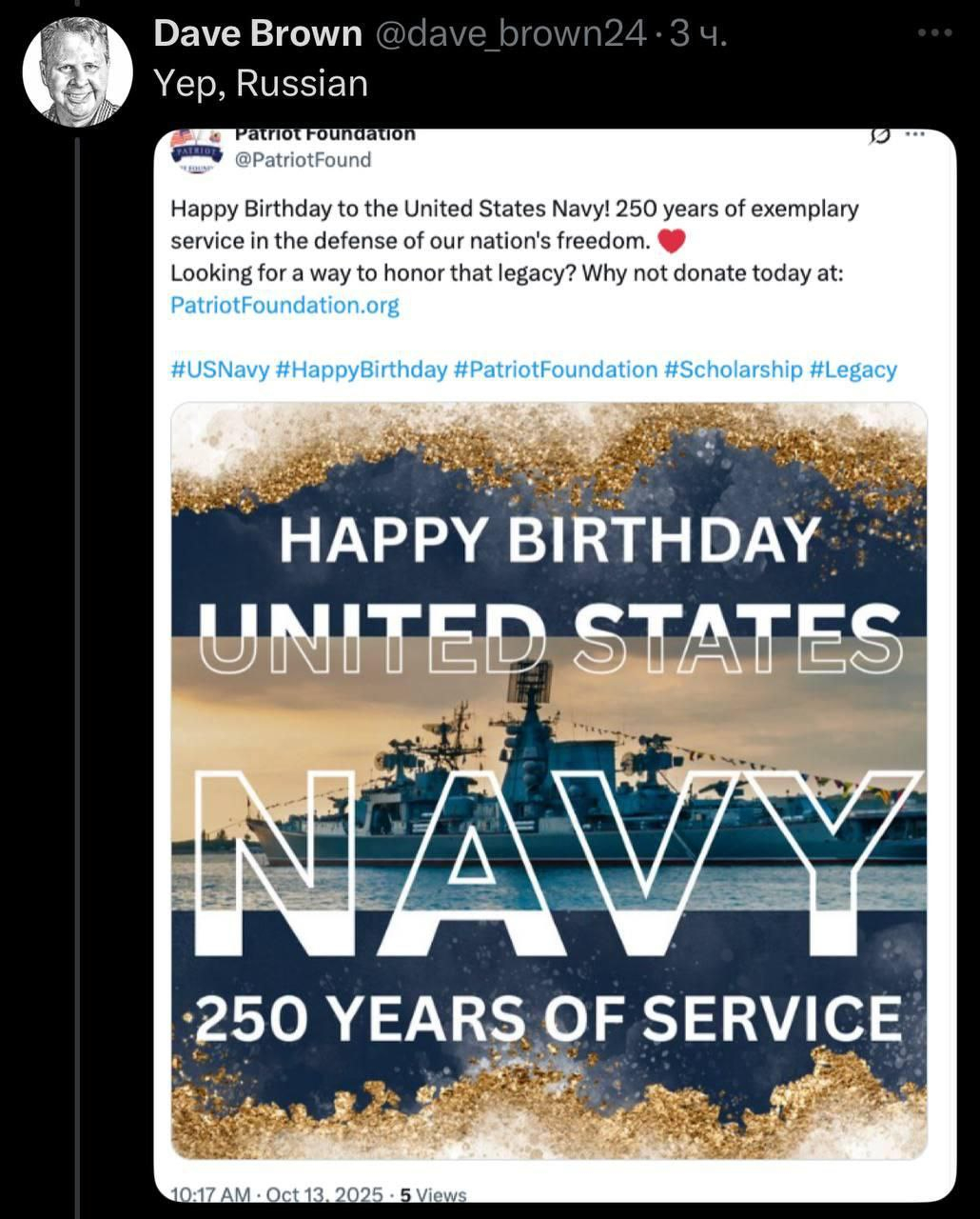 烽火问鼎计划 美国海军庆祝成立250周年,海报画的却是俄罗斯海军的船[二哈]