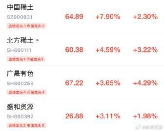 【A股稀土永磁板块又大涨 ,中国稀土等股再创新高 】稀土永磁板块延续强势,银河磁体、中国稀土、新莱福盘中创新高,包钢股份、中国铝业、中国瑞林、惠城环保跟涨。