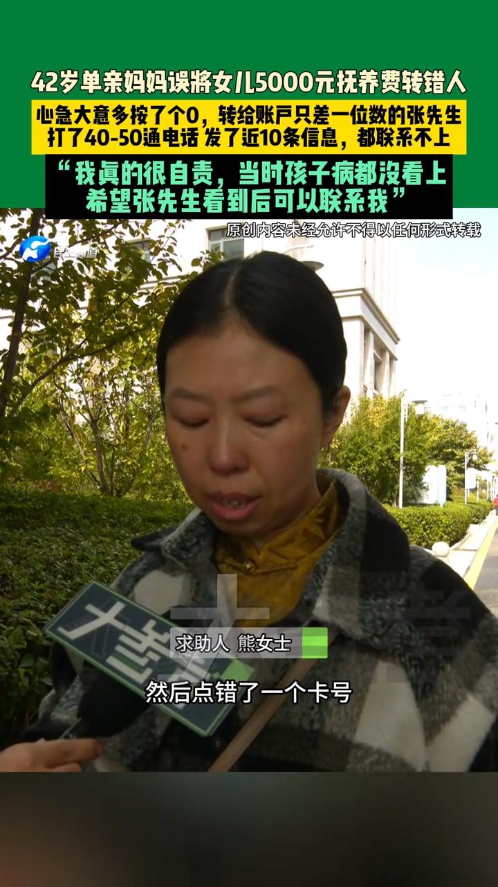“太大意了!”河南郑州,一位单亲妈妈要给女儿转5000元抚养费去看病,不料,因为心急转错了人,前前后后给对方打了四五十遍的电话,发了十几条短信,对方却一点回应都没有,听到女儿问:钱是不是要不回来了?妈妈当场就哭了 熊女士介绍,她是一位独自抚养女儿的单亲妈妈。前夫给孩子转了五千元抚养费,正好女儿生病需要拔牙,熊女士匆忙操作转账,却因输错卡号都按了一个0,误将钱转给了一位姓张的陌生人 当时她还没有察觉,直到女儿询问钱怎么一直没有到账,熊女士才发现转错了人,连续拨打了四五十通电话,发送了十几条短信,向对方说明这笔钱是孩子的看病钱,恳求退还 然而对方始终没有回应。女儿小声问,钱是不是要不回来了?熊女士听后忍不住落泪,最终只能带女儿回家,病也没看成。事后熊女士把这个事反映给了媒体 对此,有网友说:既然对方没回应,那就直接报警好了,联系记者有什么用呢 其实在现实里,钱转错了账户,法律确实规定对方要归还,否则属于不当得利。熊女士完全可以报警,银行也能协助走流程,但对一个普通人来说,这些手续既耗时又折腾,他可能也是希望协商沟通解决 现在网络支付方便得很,转账几秒到账,但也让这种错误变得越来越常见。输入多一个数字、少一个字母,可能就把钱送到了陌生人手里,所以说无论事情有着急,一定要核对仔细,不然既给自己添麻烦,也给别人添麻烦