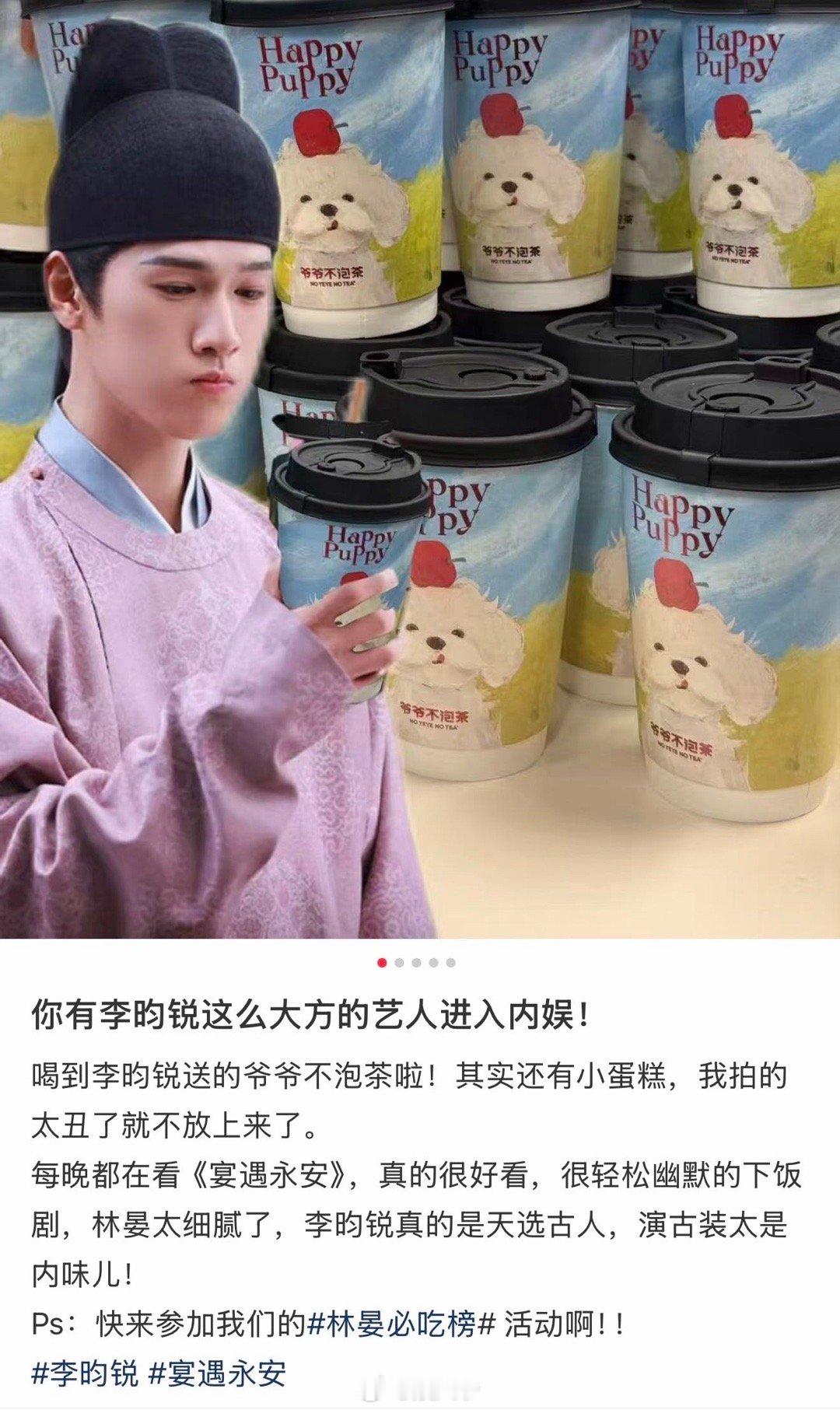 刷到工作人员晒的奶茶狠狠羡慕!李昀锐经常请喝奶茶的帅气哥哥 不仅有投喂还能边喝边追《宴遇永安》,这工作福利真的想求“抄作业”! ​​​