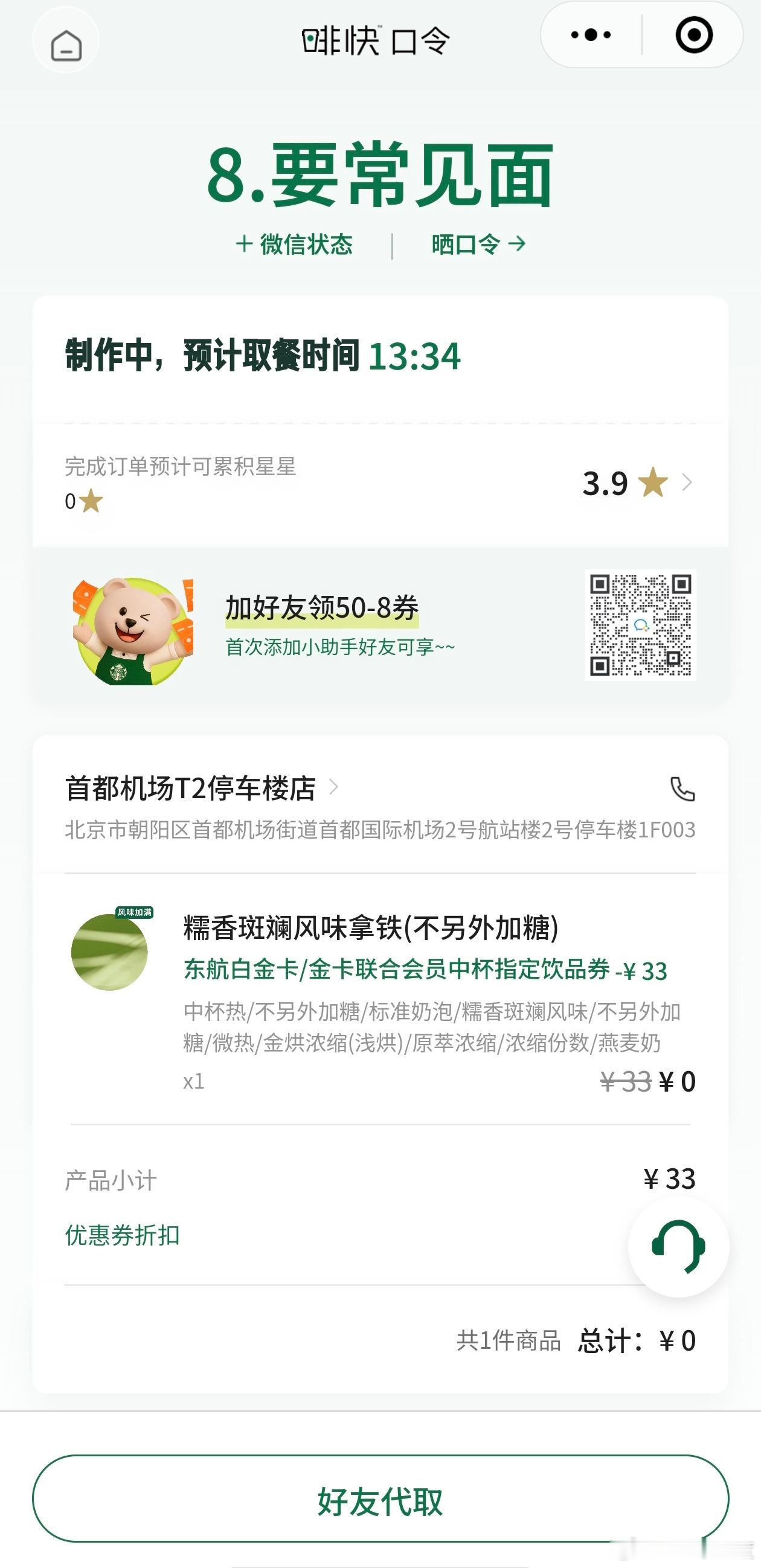 才知道东航金卡/白金会员在机场店能免费拿一杯星巴克,感觉之前错过了一个亿。