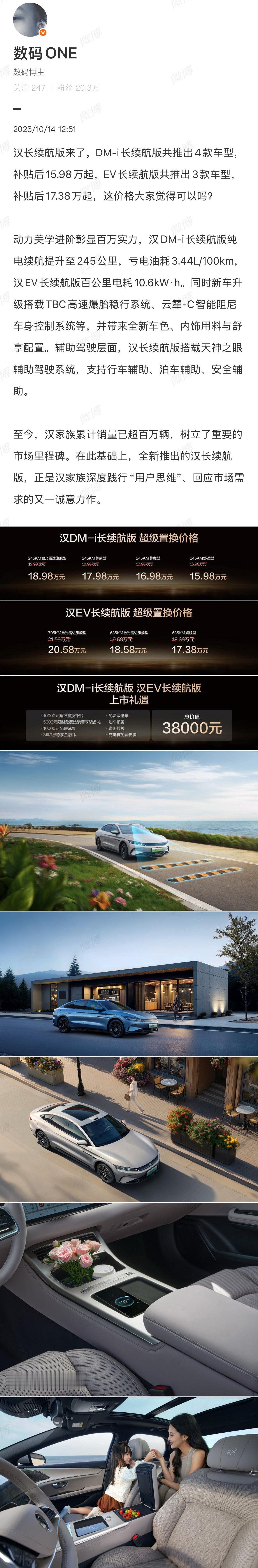 比亚迪汉长续航版正式上市了,动力美学进阶彰显百万实力。
