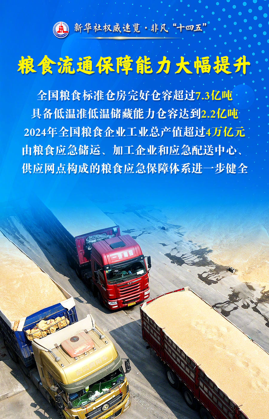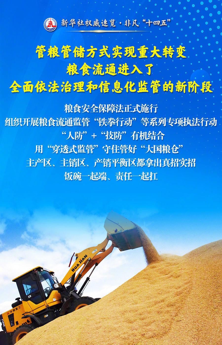 【新华社权威速览·#非凡十四五#|#保障国家粮食安全他们这样干#!】悠悠万事,吃饭为大。“十四五”时期,各地区各有关部门积极践行新粮食安全观,大力实施国家粮食安全战略,扎实推进粮食产购储加销协同保障,粮食流通改革发展各项任务进展符合预期,国家粮食安全得到有效保障,为经济社会高质量发展提供了有力支撑。跟随海报,一起了解。
