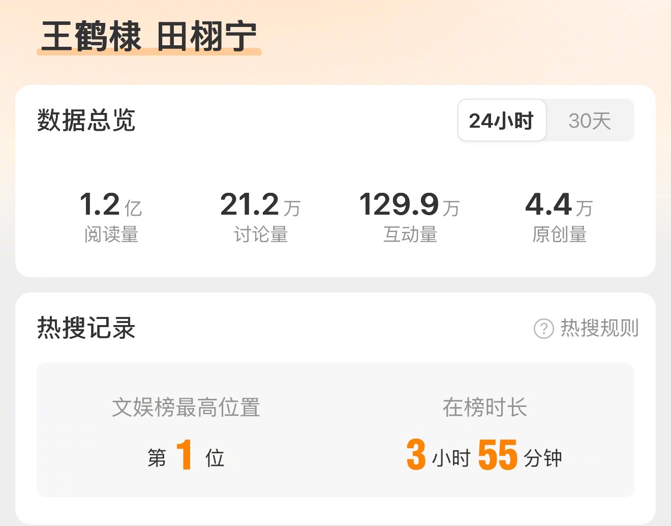 王鹤棣、田栩宁这个话题度过亿了,两位都是顶流流量!