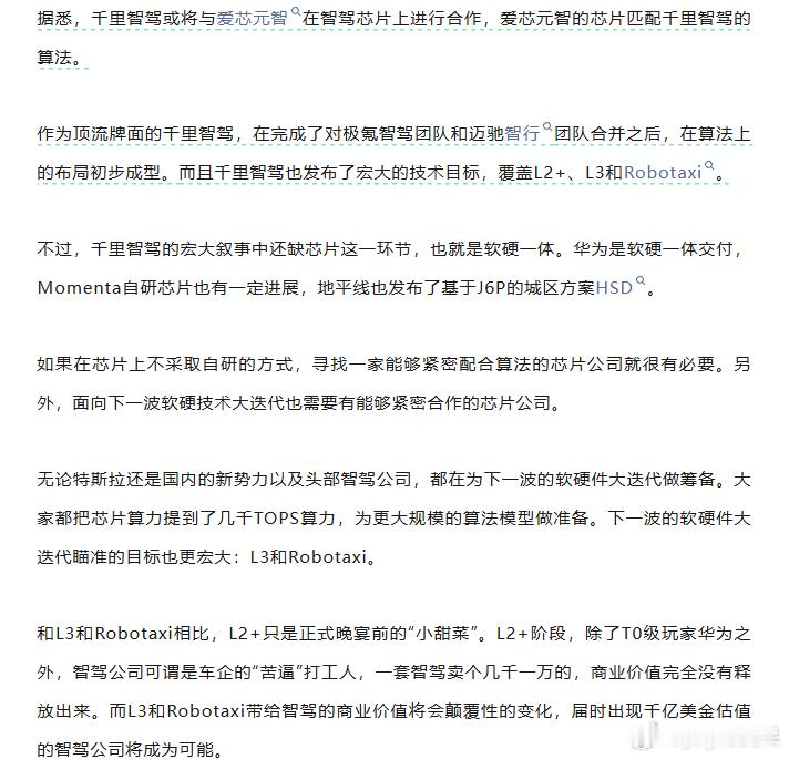 信息来源于红色星际千里浩瀚,将开发自研AD芯片,软硬件一体将会成为头部玩家的标配