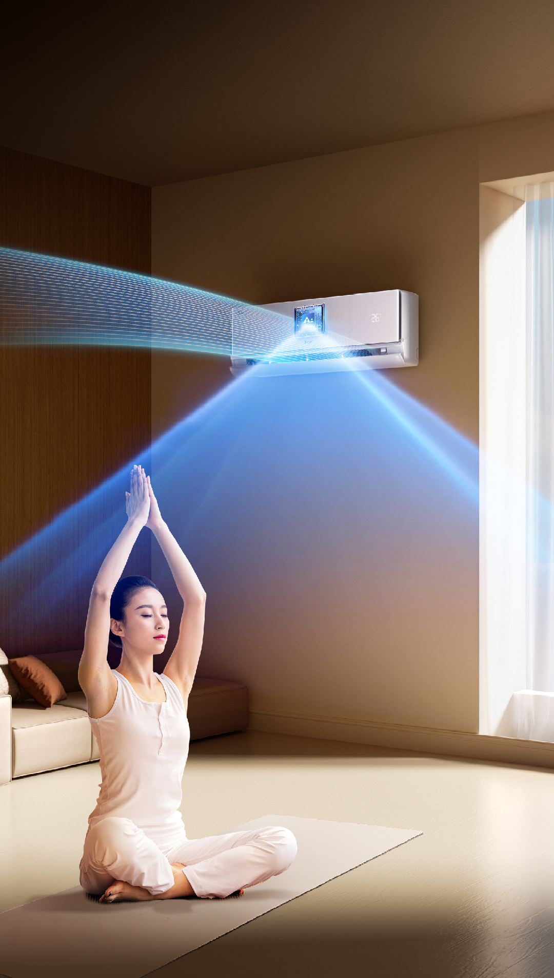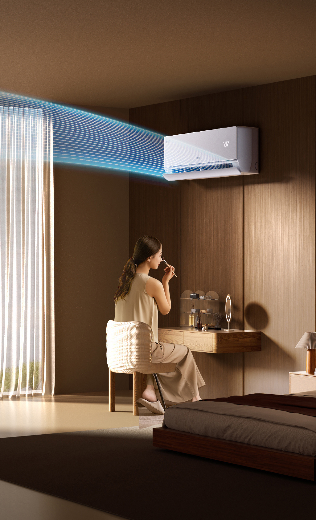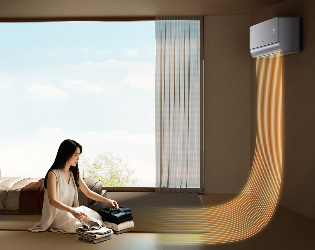 AI人感防直吹:毫米波雷达定位人体,双翼导风300°送风,避免直吹不适,尤其适合母婴/老年家庭。