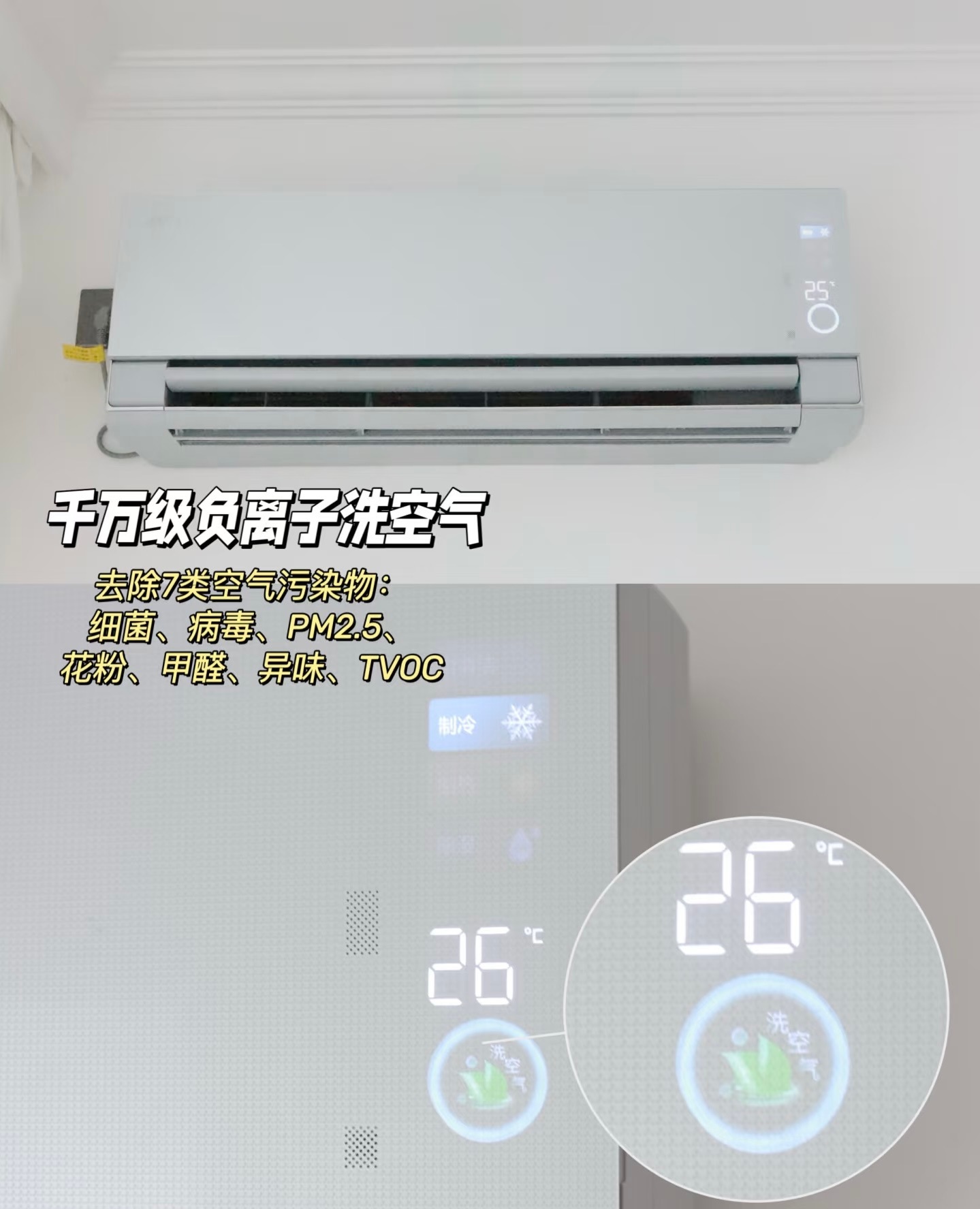 六效空气管理:整合冷暖、除湿、净化、消毒、循环、清新功能,六极高能脉冲释放亿级负离子。