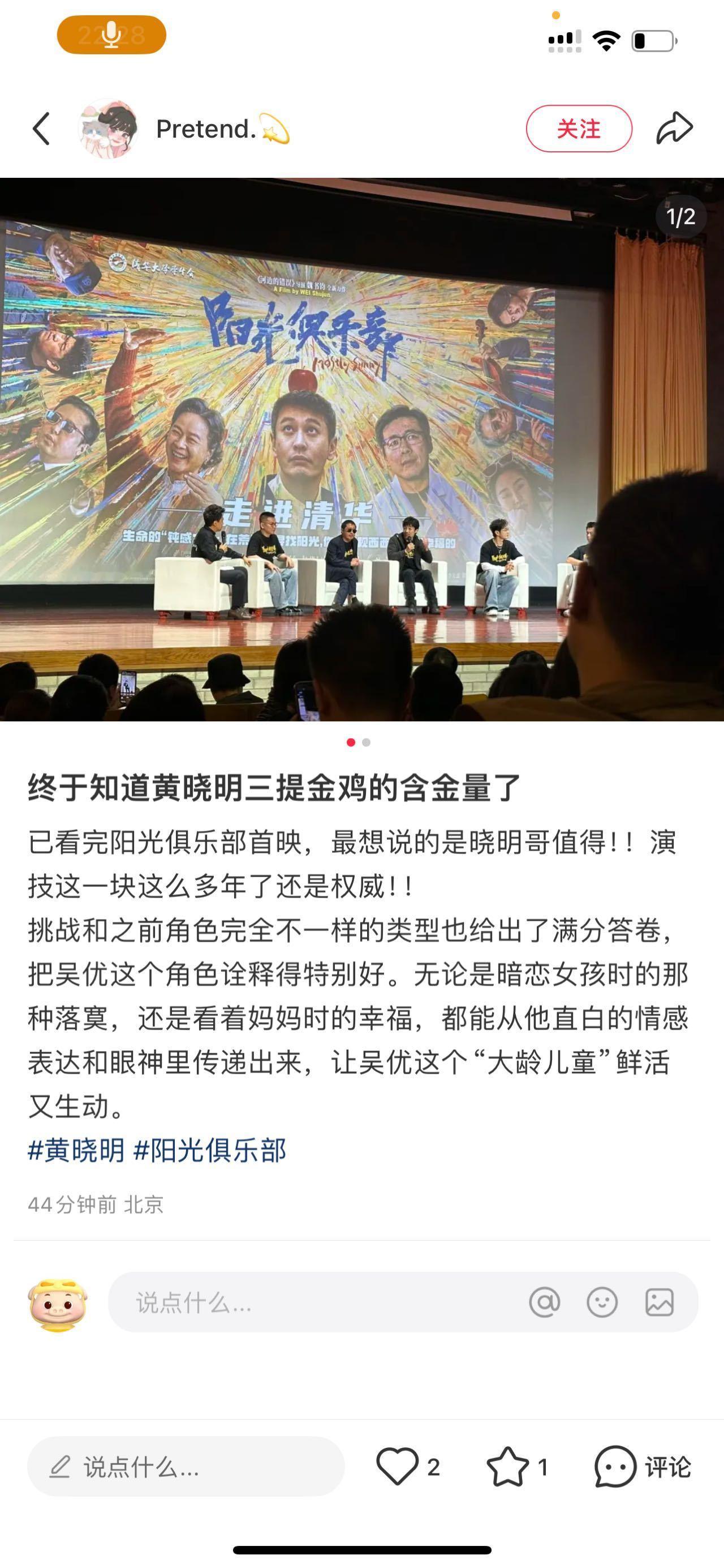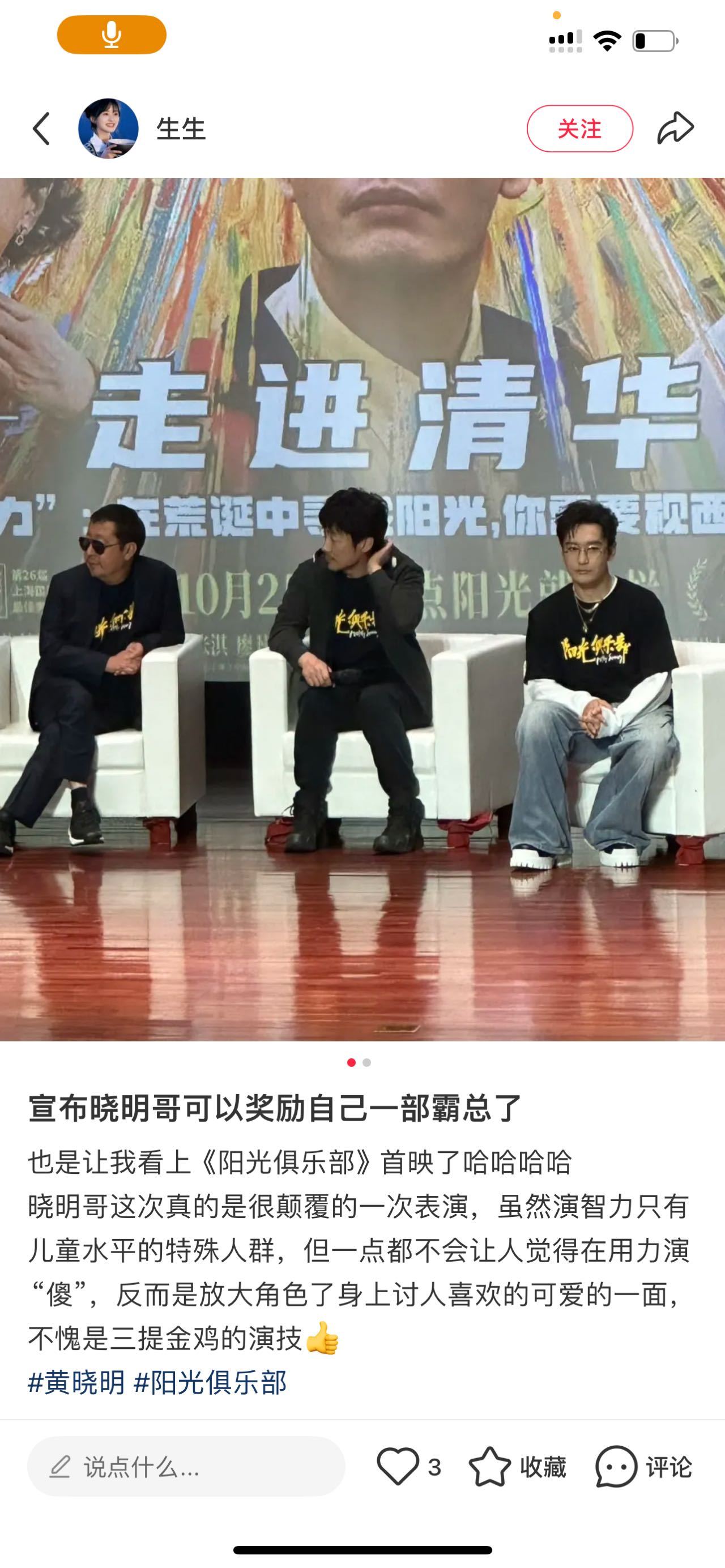 《阳光俱乐部》清华首映反馈,真的让我反复肯定晓明哥,不愧是影帝啊!!