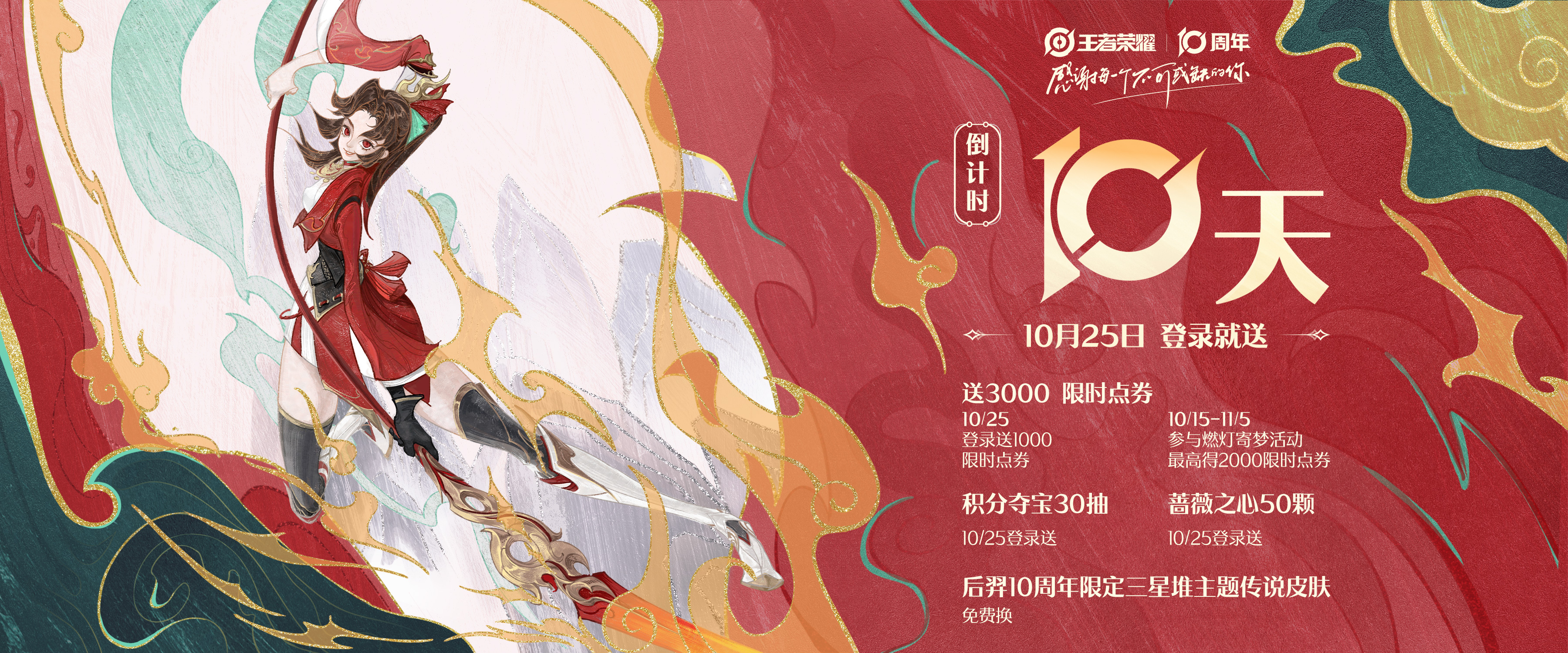 距1025王者十周年还有10天云大将军喊你1025来领福利啦