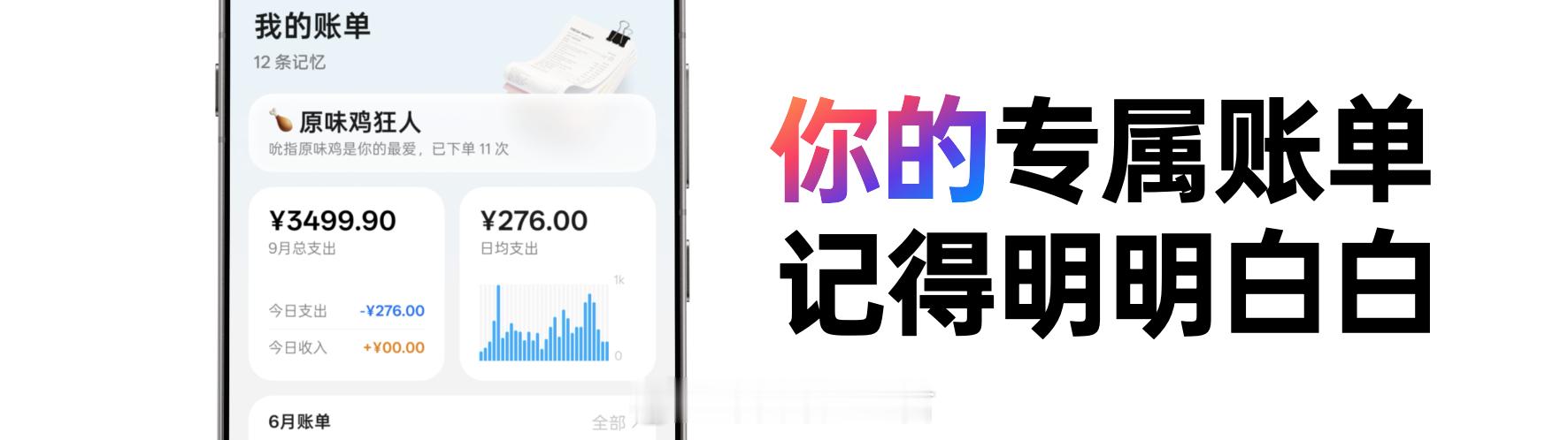 生活场景上的点外卖功能,按一下即可自动识别取餐码,取餐码,云上见!想记账,按一下即可快速一键记账,月度消费,云上见!超强记忆能力,生活从此简单。