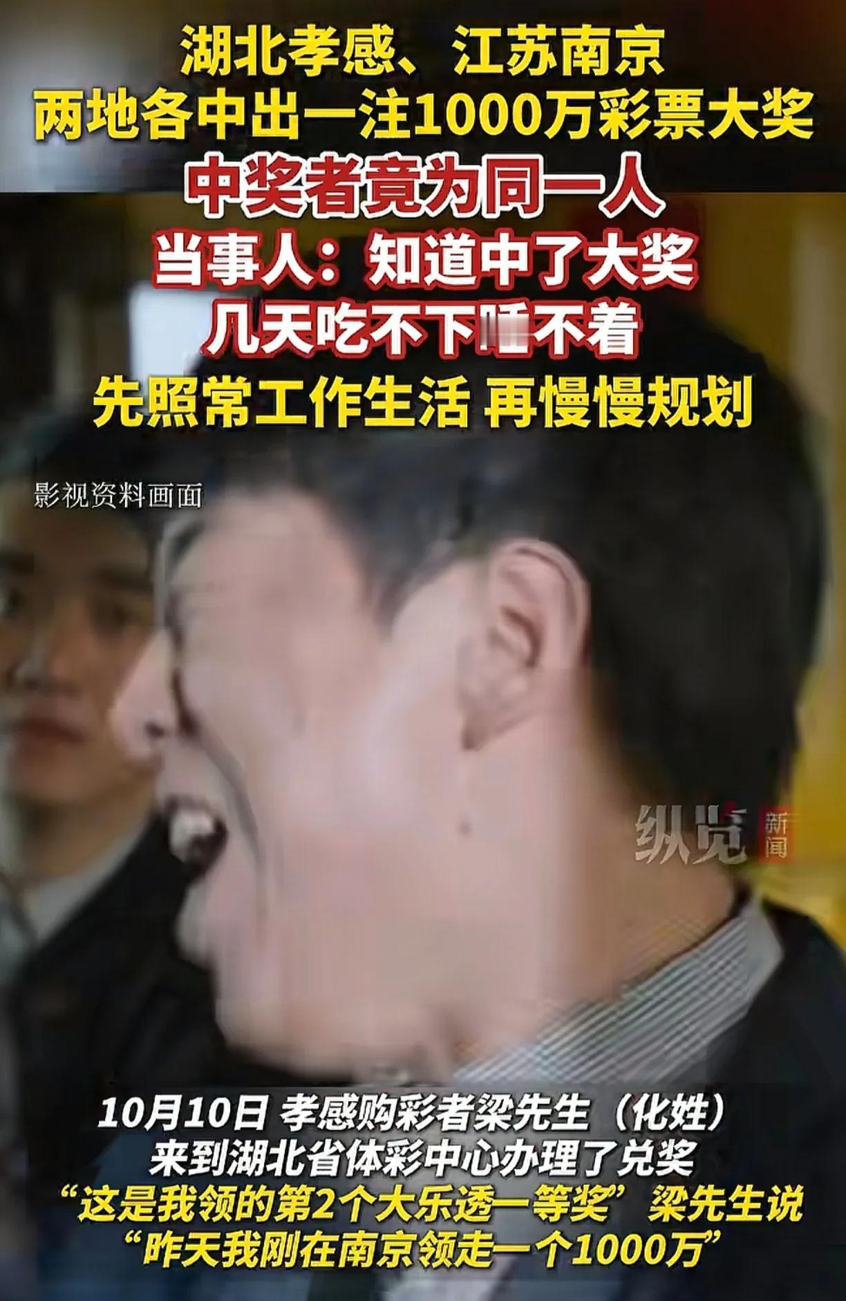 彩票界再爆大新闻!湖北孝感与江苏南京两地开出的1000万大奖,得主竟是同一人——