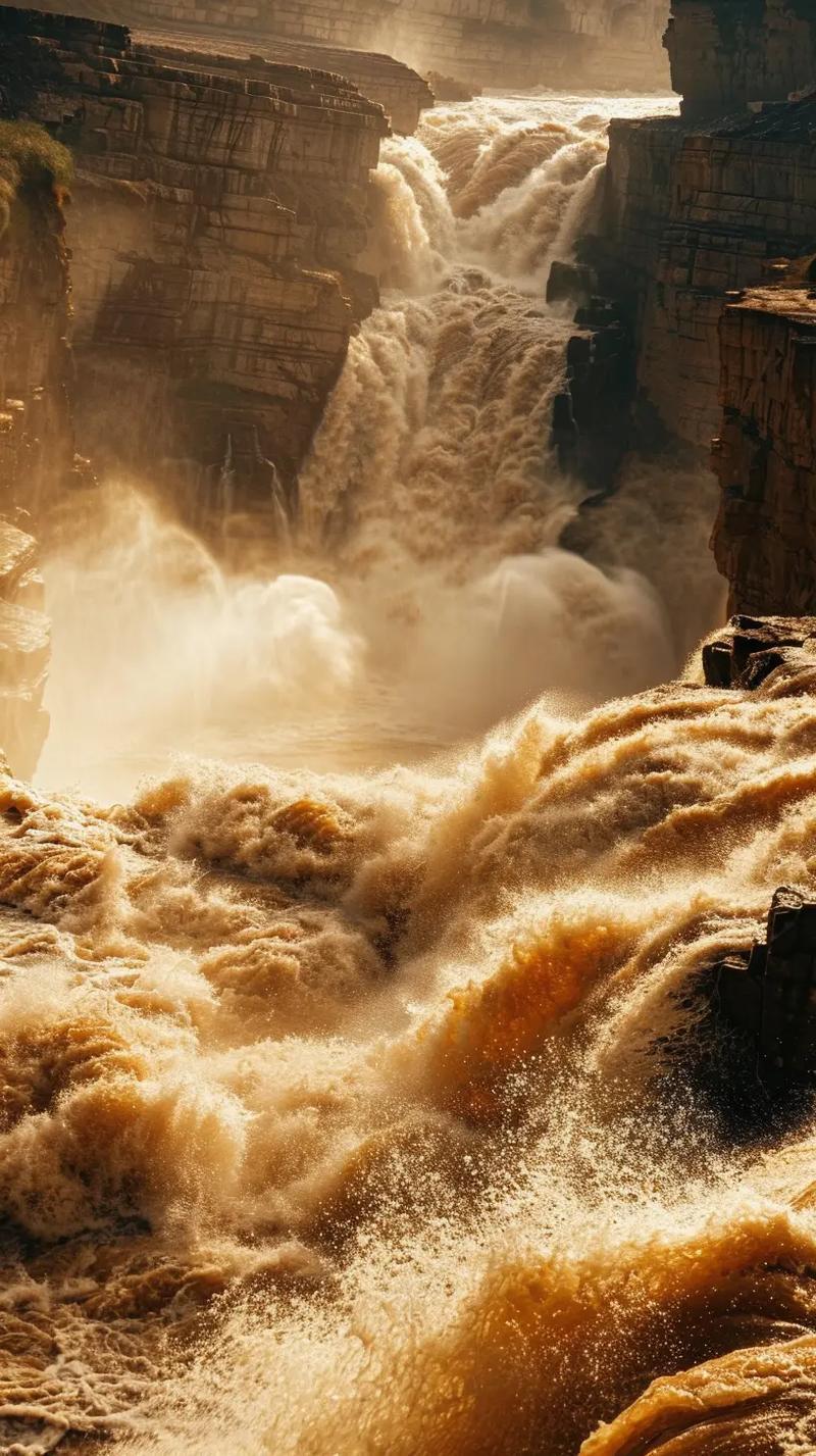 黄河之水天上来! “轰隆隆”…… 黄河壶口的洪水, 如巨龙咆哮, 裹挟着黄土高原的泥沙, 撞击岩石的轰鸣, 震得岸堤微微颤抖。 洪水飞流而下, 从断崖处坠落, 连成数百米的宏伟长卷, 飞溅的浪花激起一层层水雾, 朦胧间偶现彩虹, 与两岸峭壁构成一幅水墨丹青。 当黄水奔入十里龙槽子, 那不息的涛声里, 藏着黄河最滚烫的心跳, 这奔涌的金瀑, 象征着中华民族 ––绵延不绝的血脉与文明。 壶口瀑布 黄河 雄浑的黄河 陕西一壶口瀑布 黄金河壶口瀑布 黄河中游涨水 黄河涨水期 黄河之景 黄河壶口冰瀑布 壶口瀑布大峡谷 陕西黄河瀑布 黄河决堤 洪水流 黄河灾难