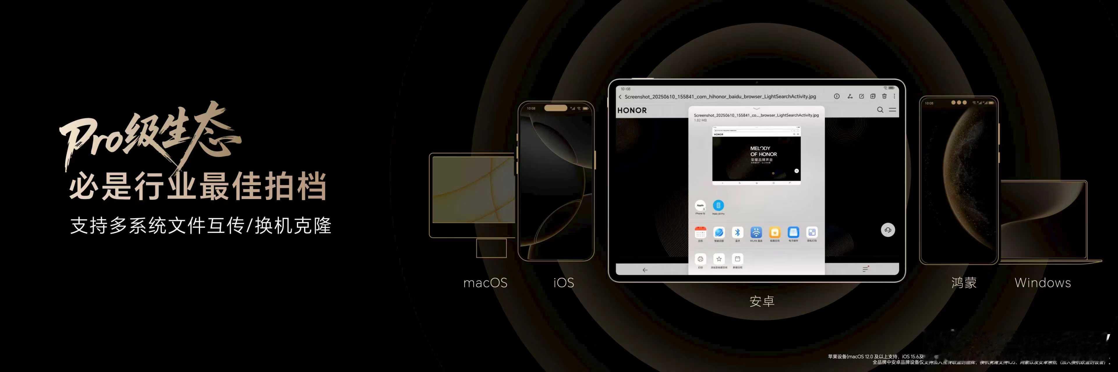 荣耀MagicPad3 Pro首发MagicOS 10,必是AI体验天花板!支持iOS、安卓、鸿蒙、Windows、Mac系统的文件互传与换机克隆,一键转换苹果三件套格式,并为iPhone提供23W反向充电,是最佳跨平台拍档,跟谁都很搭。
