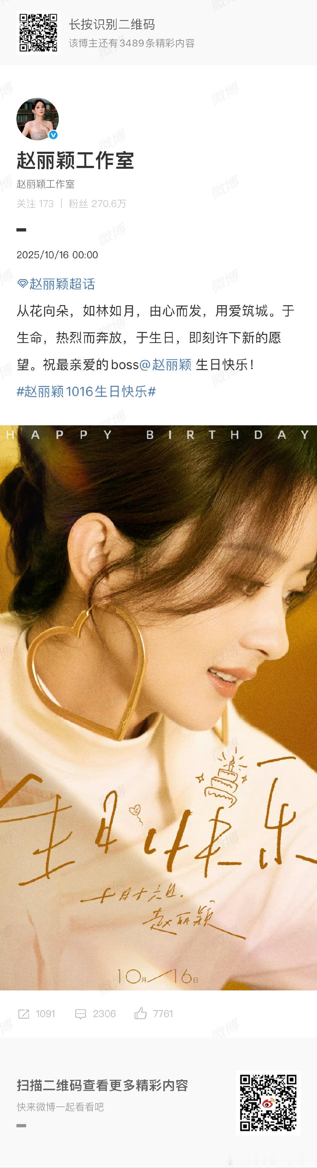 赵丽颖38岁生日照赵丽颖生日工作室发文赵丽颖,38岁生日快乐!愿你依旧笑容灿烂,作品不断,生活幸福,事业辉煌,每一步都走得坚定而美好。