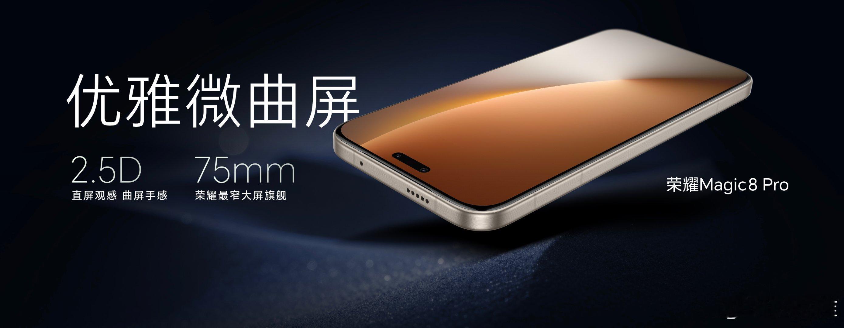 荣耀Magic8 Pro版配备旭日金砂、天青色、雪域白、绒黑色,搭载全新等深四微曲屏——既有直屏的通透视觉,又兼具曲屏的柔和握感,是今年少有兼顾观感与手感的旗舰设计。