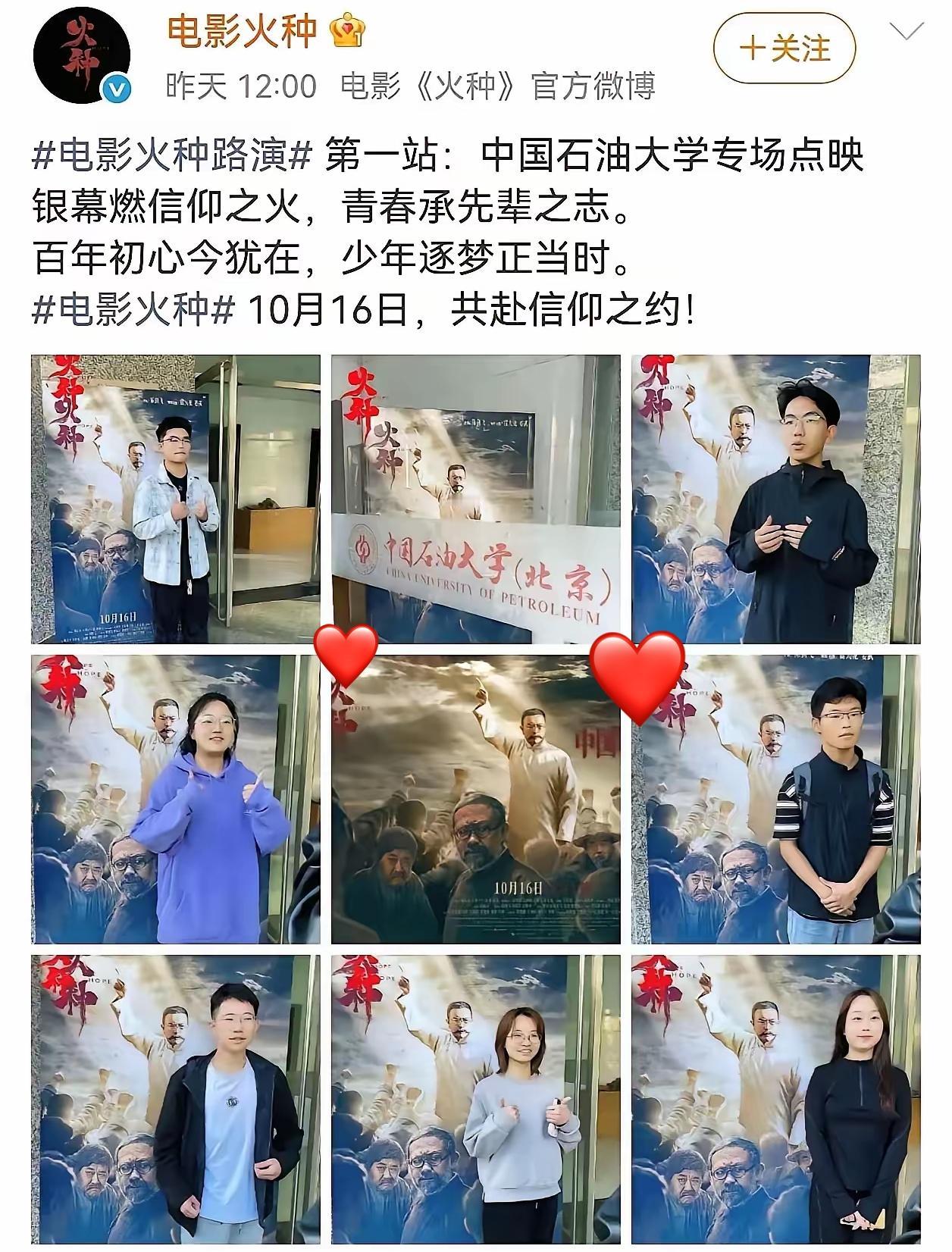 别瞎猜了!中国石油大学(北京)要映的《火种》,压根不是啥带水分的片子,人家讲的是