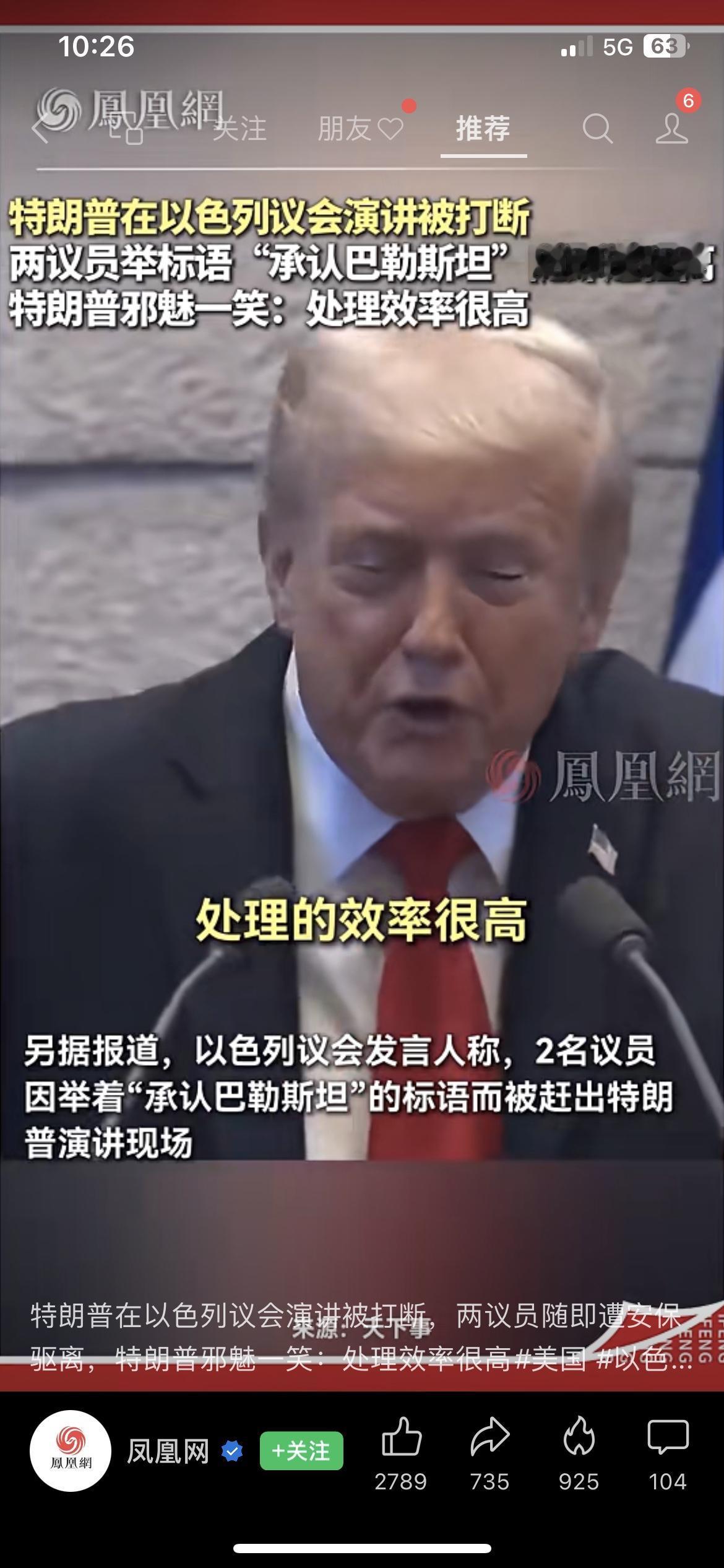 特朗普以色列演讲被硬闯!议员举“承认巴勒斯坦”标语被拖走,他邪魅一笑:效率真高 10月13日特朗普在以色列议会演讲,俩左翼议员举标语打断,当场被安保架走!60岁的卡西夫大喊大叫,50岁的奥德也跟着闹,结果全被请出会场。以色列议长赶紧道歉,特朗普却来句“处理效率很高”…这场面也太戏剧了! 特朗普 国际趣闻 以色列议会特朗普怒怼 以色列 以色列出大事情