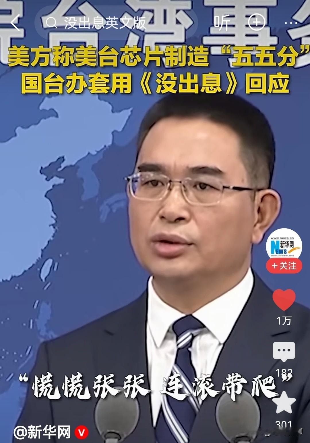 近日,针对美国声称美台芯片制造“五五分”的说法,国台办发言人专门引用最近的网红歌