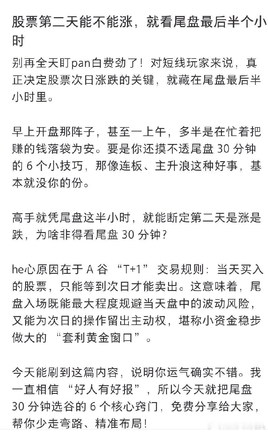 说“看尾盘半小时判次日涨跌”,像看宴席收尾时主人的动作——能猜透他下顿饭的打算,有一定道理但非绝对,关键看怎么“观察动作”。