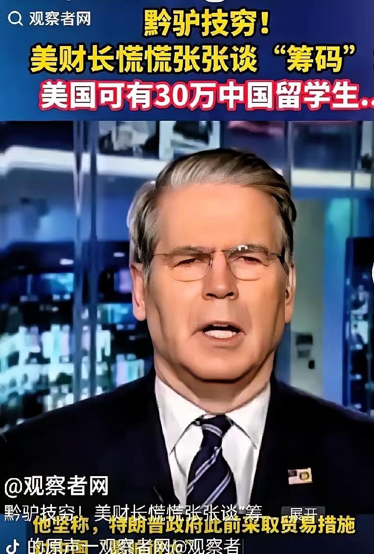 美国急了, 美国财政部长把在美留学生当成所谓的“筹码”,这种说法实在让人不齿。留学生背井离乡去求学,本是为了增长见识、提升自己,却被当成博弈的工具,这哪里有半点“讲人权”的样子? 要知道,这些中国留学生在美国的花费,每年为当地贡献超过140亿美元的消费需求,支撑了不少行业的发展,他们是参与者、贡献者,绝不是什么可以随意拿捏的“人质”。 如果美国真敢动这种歪心思,只会让更多人看清其真实面目,让那些还在考虑出国留学的人望而却步。其实,如今中国在很多领域的发展都日新月异,科研环境和平台越来越完善,把人才留在国内,让他们在家门口就能施展才华,未必不是一件好事。用留学生做筹码,只会暴露美国的短视和无底线,最终只会反噬自身。