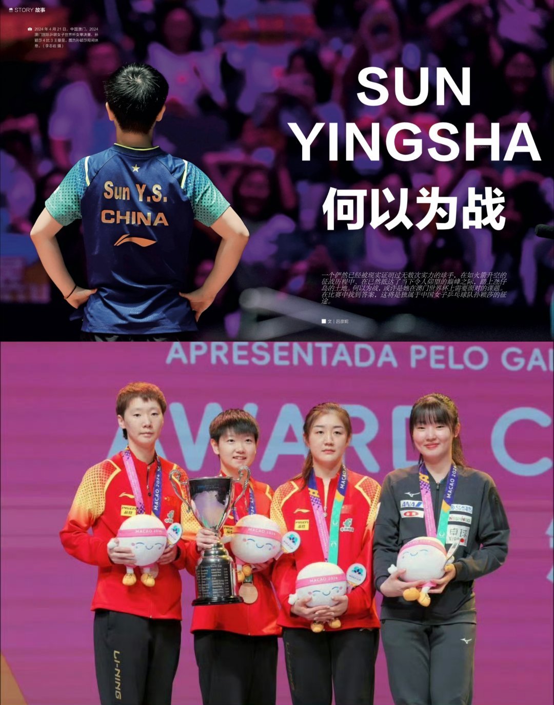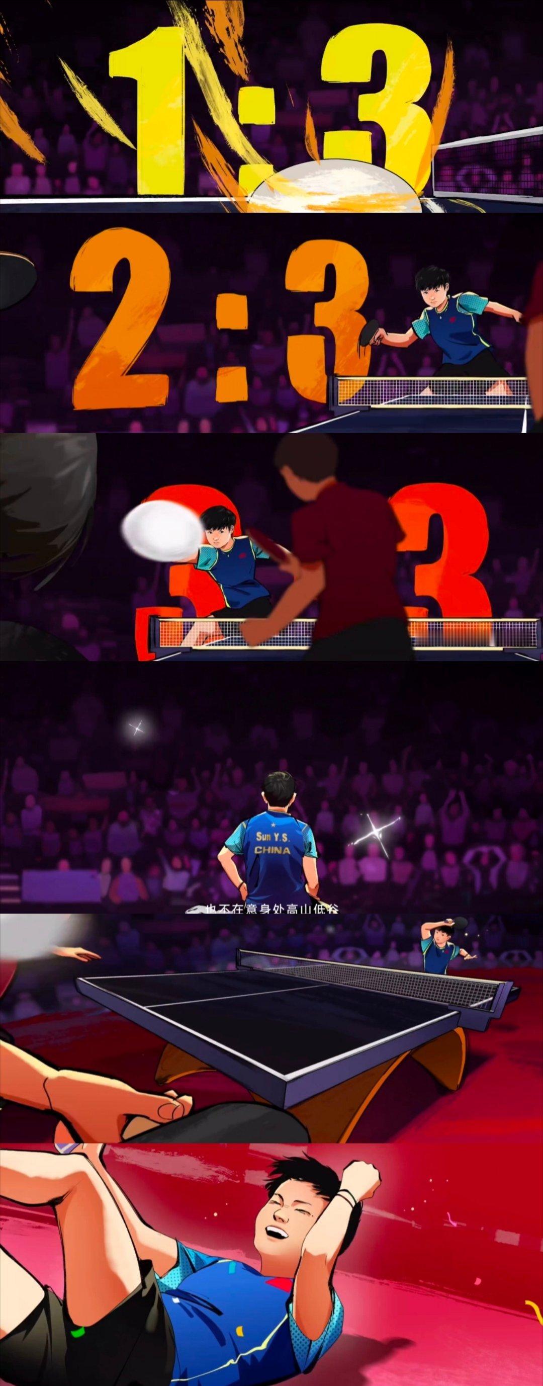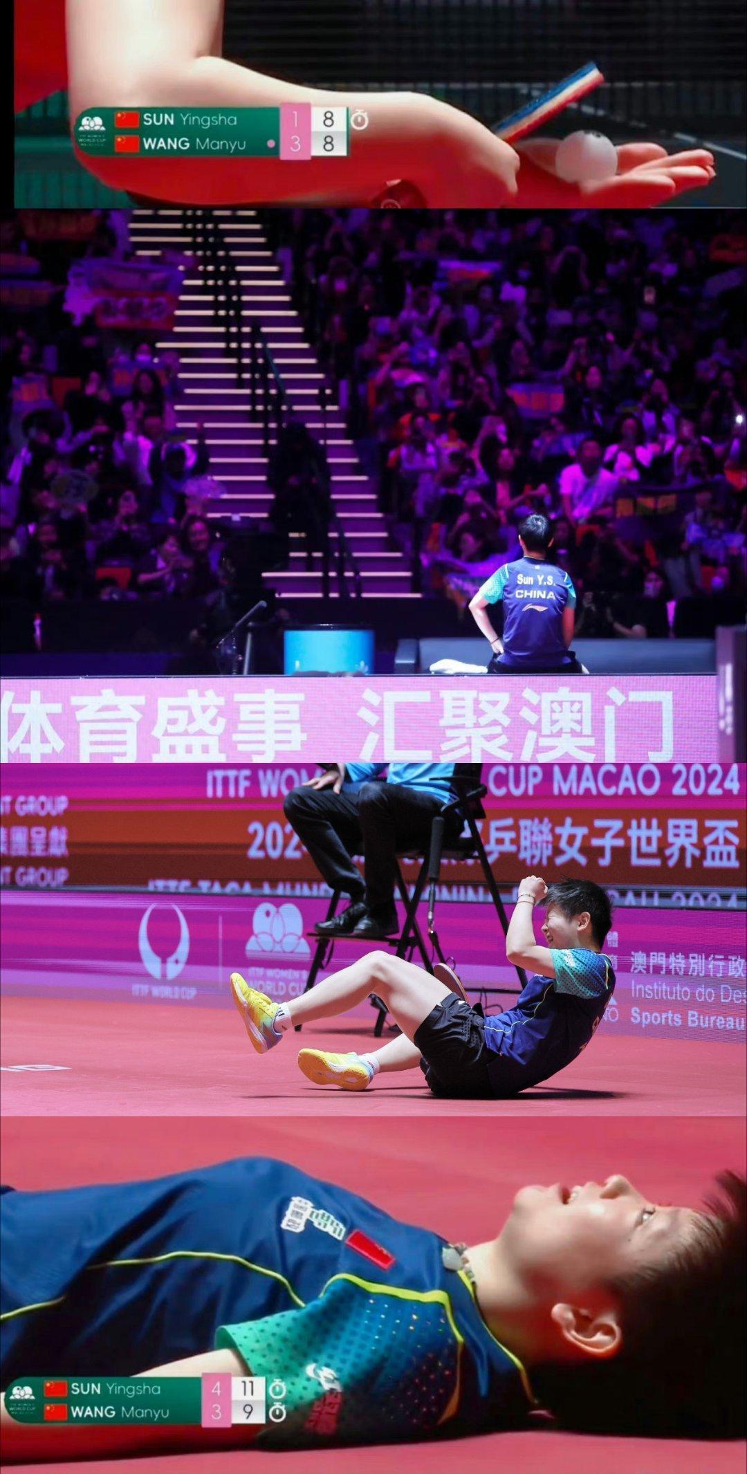 1-3→2-3→3-3→4-3🏆,2024年澳门世界杯女单决赛,孙颖莎1-3落后连扳三局绝地大逆转4-3夺冠的各种镜头真的是经典咏流传了。