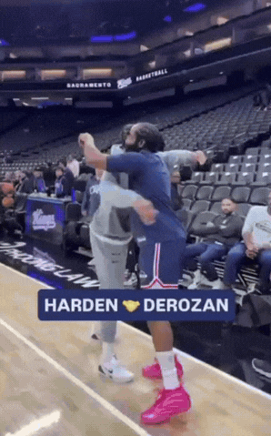 好哥们!哈登和德罗赞深情相拥 今天快船在客场与国王进行季前赛比赛。 赛前,哈登与